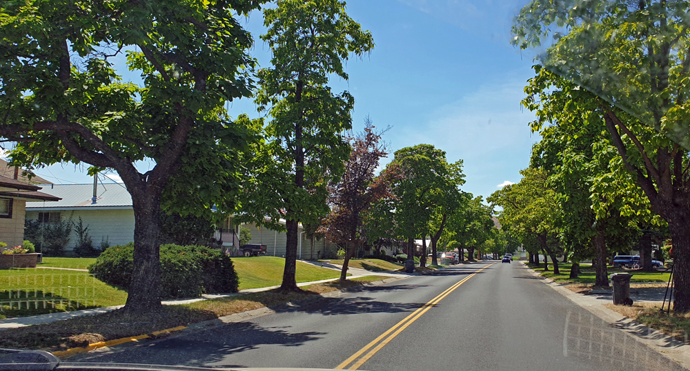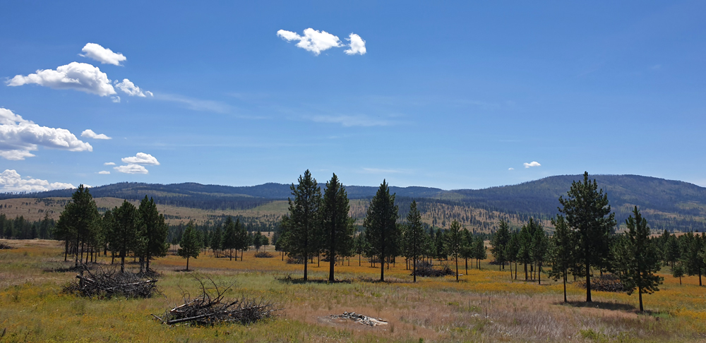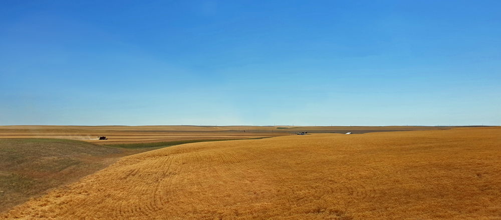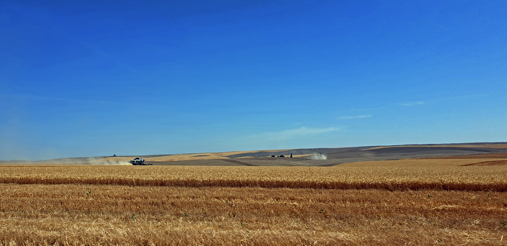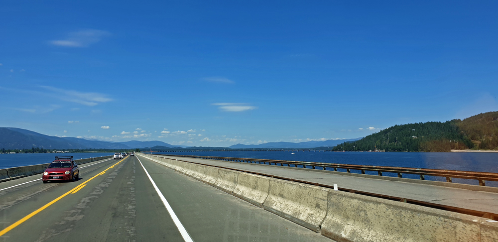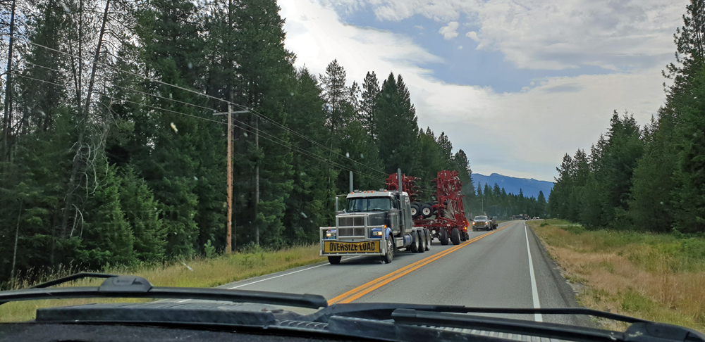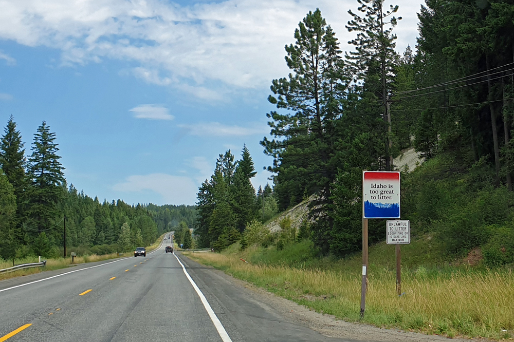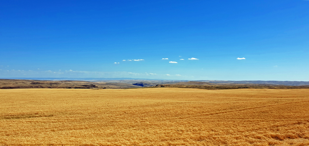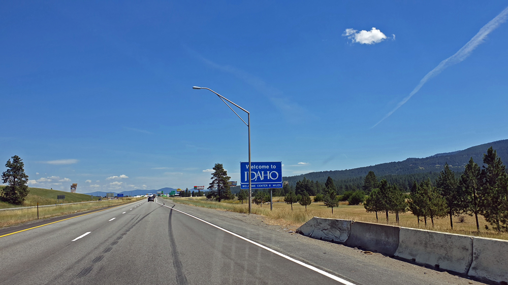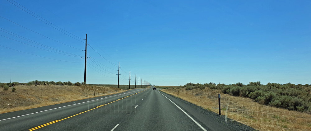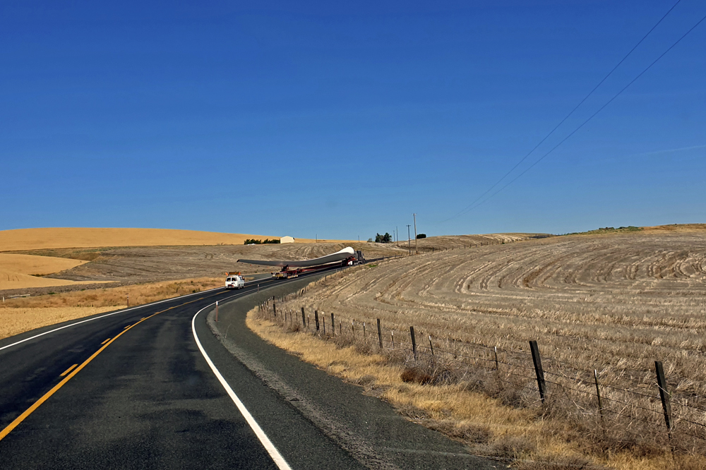 Die WA-261 führt uns dann durch unendliche, hügelige Getreide-Weiten, wobei wir kurz durch den Transport eines enormen Windrad-Flügels aufgehalten werden. Wir möchten möglichst schnell aus dieser heissen Landschaft entfliehen und nehmen deshalb bei Ritzville die I-90, die uns vorbei an Spokane nach Idaho führt.