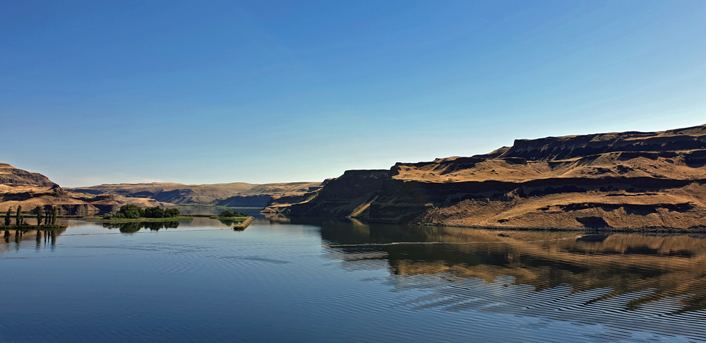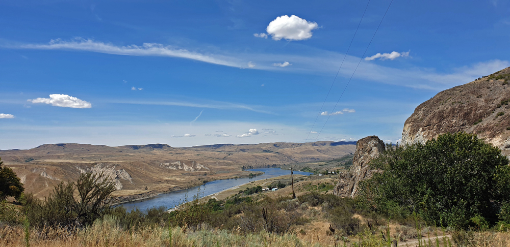 Da es hier sonst nicht allzu viele Übernachtungsmöglichkeiten gibt, fahren wir in den kleinen Ayer Boat Basin Campground (gratis Corps of Engineers-Platz) im Tal des Snake River. Die Wahl stellt sich als gut und schlecht heraus. Schlecht, weil es im Flusstal 44 °C heiss ist und auch in der Nacht nicht wesentlich abkühlt, gut, weil man von hier unten einen ungestörten Blick auf den Nachthimmel hat und wir sogar den Kometen Neowise beobachten können.