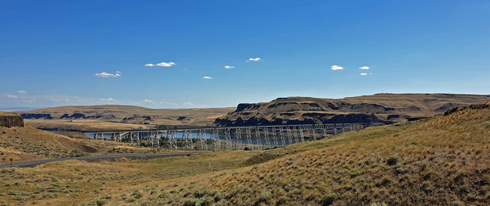 Der WA-155 durch die Colville Reservation folgend, gelangen wir wieder zum Columbia River, der an dieser Stelle vom Grand Coulee Dam, dem grössten Kraftwerk Nordamerikas, gestaut wird. Die Führungen im dritten (dem 1942 fertiggestellten Damm erst 1974 hinzugefügten) Maschinenhaus sind wegen Corona natürlich sistiert, genauso wie die nächtlichen Lasershows, die auf Damm projiziert würden. Trotzdem verbringen wir einen ganzen Nachmittag damit, den gewaltigen Damm von allen Seiten zu bestaunen.