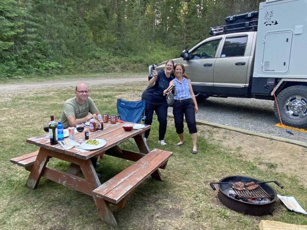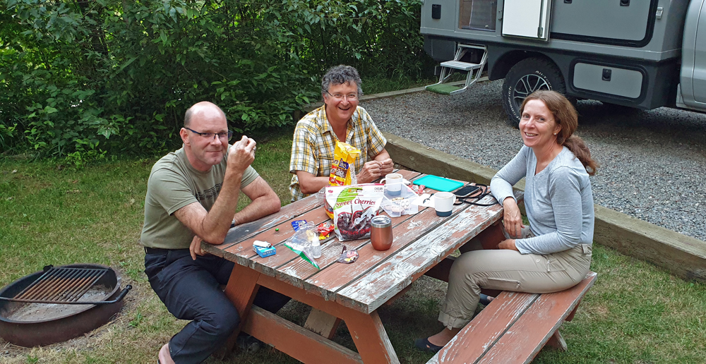 Es gibt wieder sehr viel zu erzählen und wir verbringen eine schöne Zeit zusammen. Wir tauschen Reisetipps aus, grillen und baden zusammen im hübschen und erfrischend kühlen „Kettle Lake“ (leider haben die Duschen nur für zwei bis drei Personen genug warmes Wasser…).
