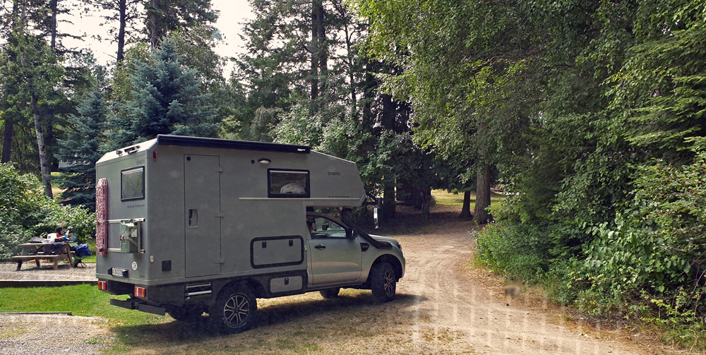 In Omak, wo wir beim Rodeo Stadion (Fairgrounds) unsere Wasservorräte auffüllen können, haben wir unseren vorläufig nördlichsten Punkt erreicht.