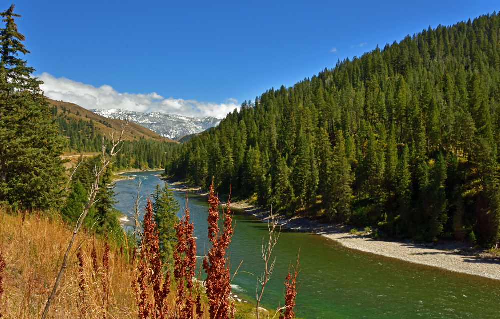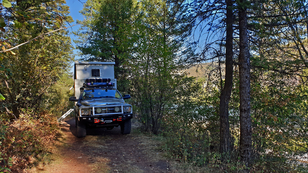 Für die drei Tage des verlängerten Wochenendes, das (normalerweise) den Abschluss der Camping-Saison bedeutet und Jedermann (und -frau) nochmals ins «Great Outdoors» stürmen lässt, ziehen wir uns an den Snake River in der Nähe von Swan Valley zurück. Sogar hier wird es schwierig, einen Platz zu ergattern, doch finden wir nach einigem Suchen dann doch noch eine Lücke im Gebüsch, die gross genug für uns ist.