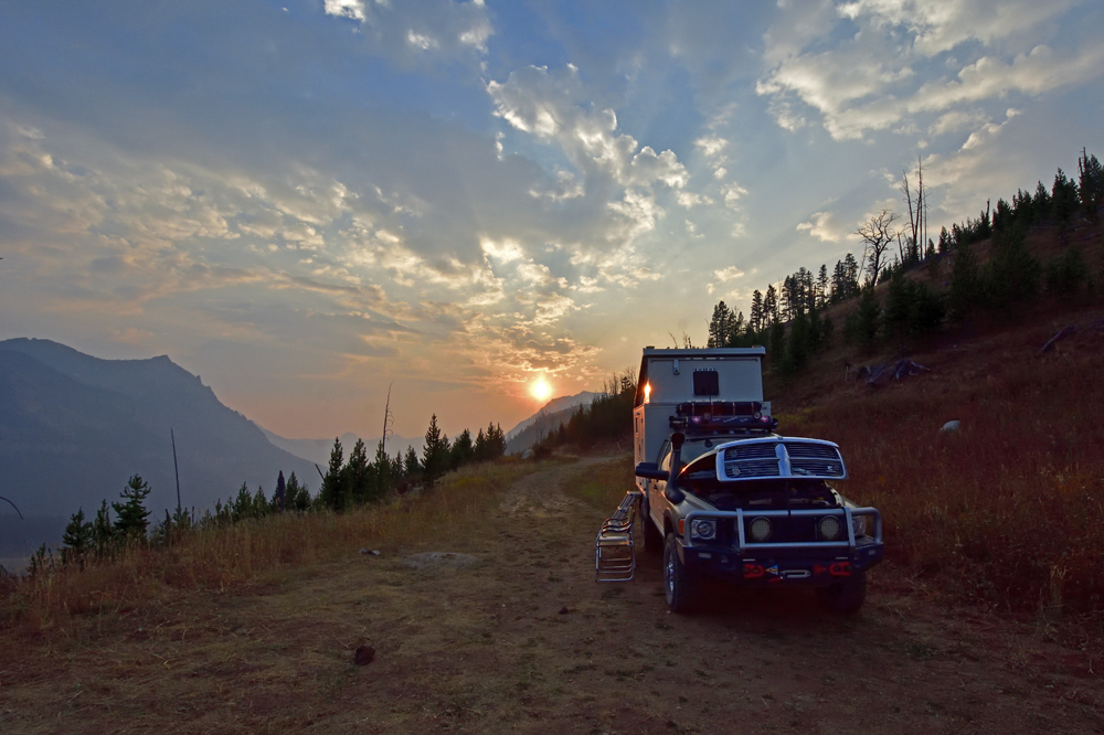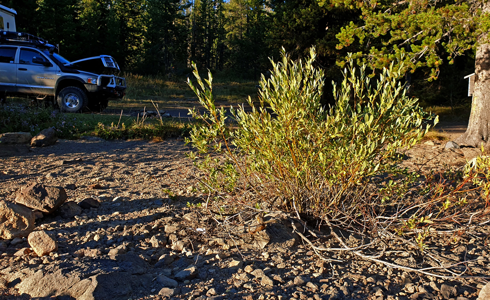 Wir beschliessen darum, uns zum Übernachten jeweils in den Custer Gallatin National Forest südlich vom Ort West Yellowstone zurückzuziehen. Im Wald finden wir dann auch eine hübsche Lichtung ganz für uns.