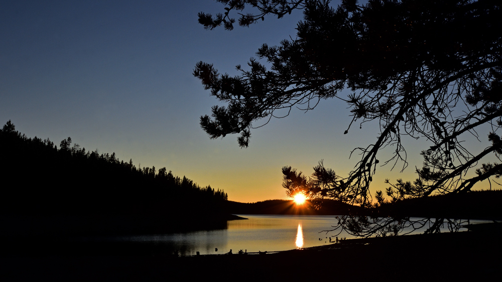 Zum Übernachten ziehen wir uns via eine sehr rumpelige Piste ans Grassy Lake Reservoir im Bridger-Teton-National Forest direkt südlich der Grenzen des Yellowstone Nationalparks zurück (auch hier gäbe es entlang der Strasse nummerierte, freie NF-Stellplätze, die jedoch alle schon voll waren). Wir geniessen den Abend und freuen uns an den zahlreichen Streifenhörnchen, die um unser Camp wuseln, und an einer Schar Gänse, die am See übernachtet. Während der Nacht ist es so kalt, dass die Scheiben am Morgen von dickem Raureif bedeckt sind.
