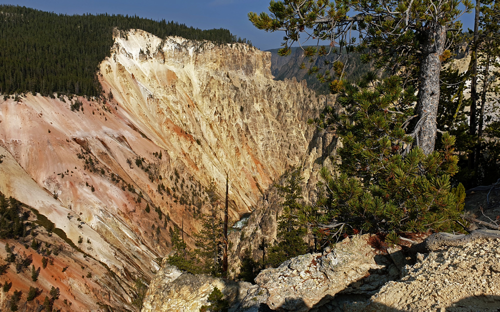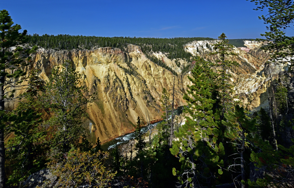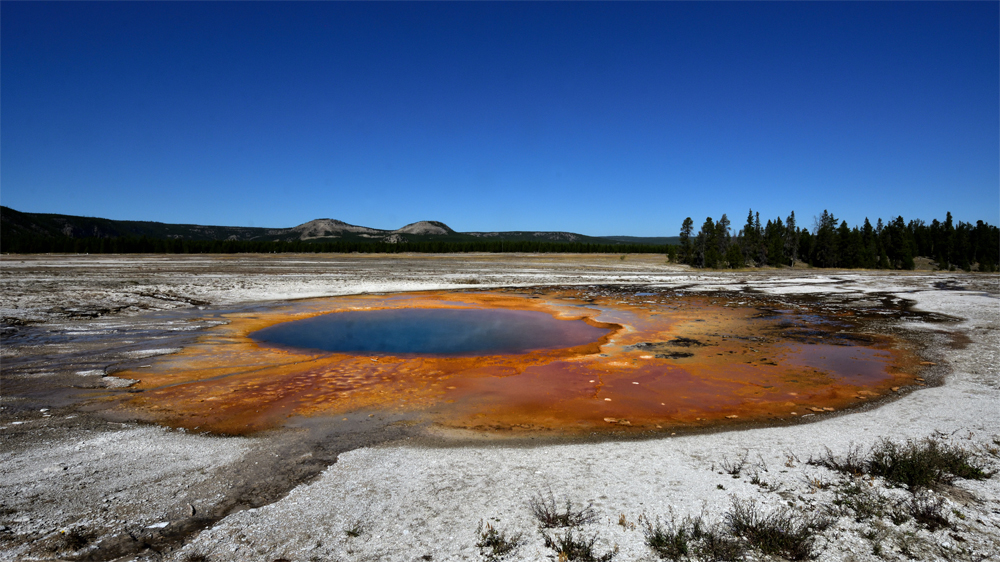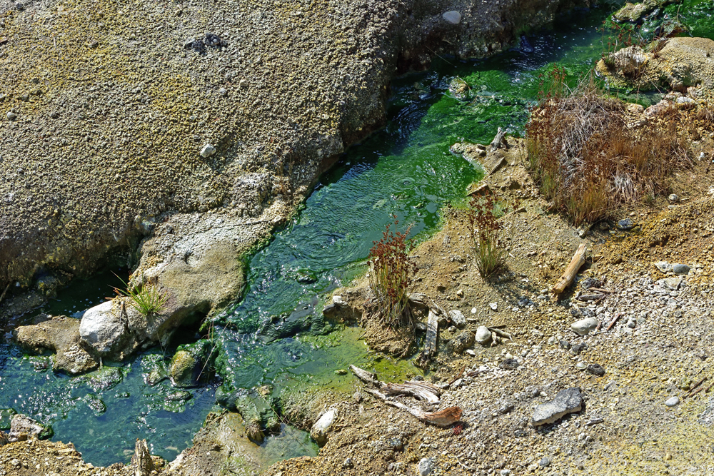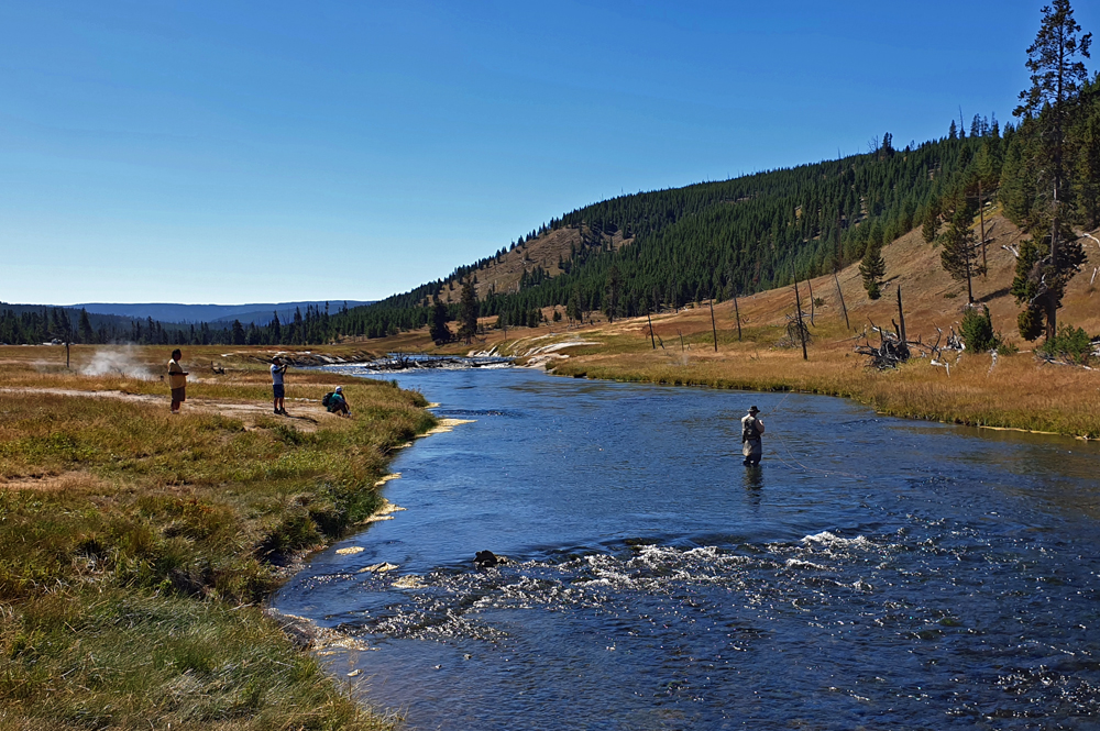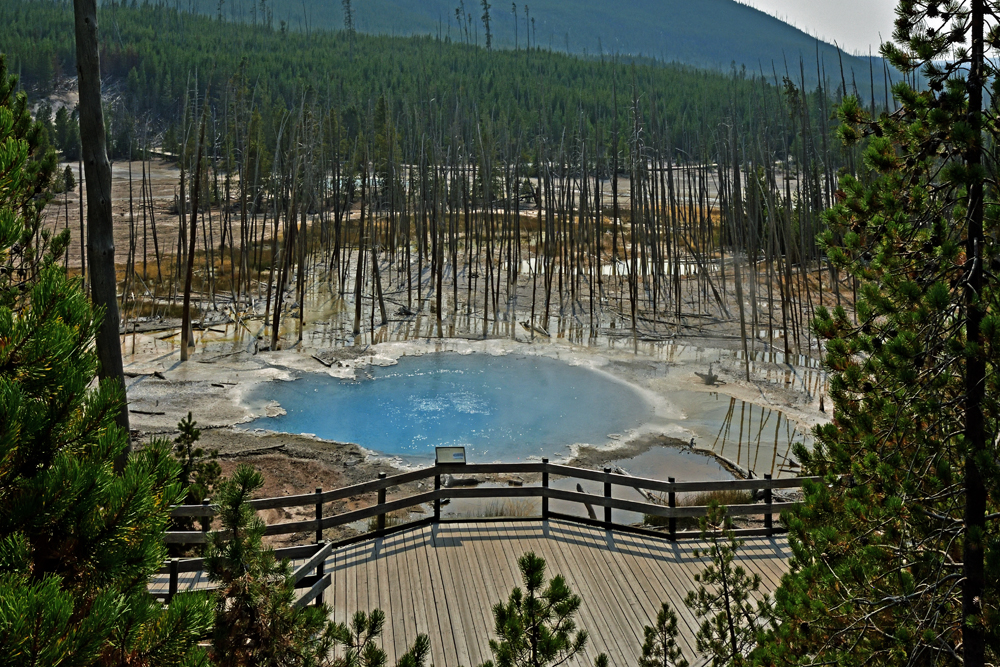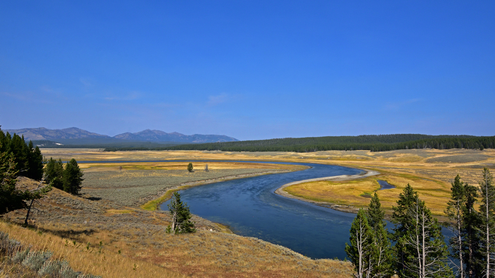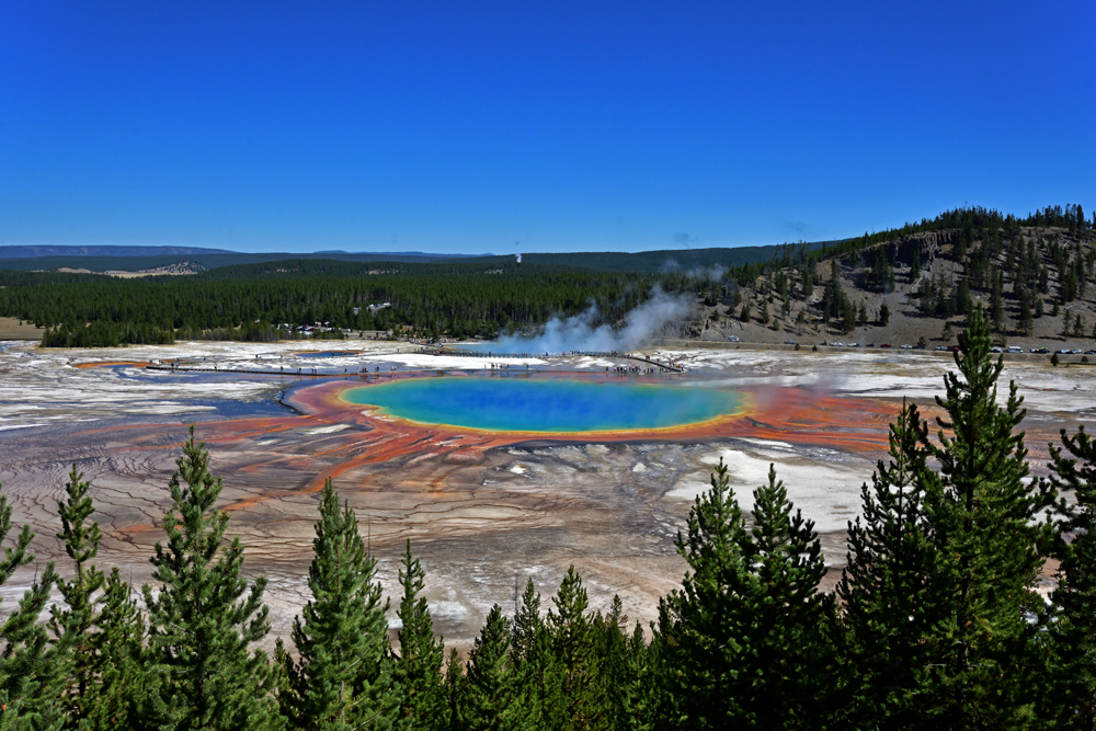 Was macht diesen Ort eigentlich so speziell? Ist es die Tatsache, dass er der erste Nationalpark der USA ist? Die abwechslungsreiche Landschaft mit grossen und kleinen Flüssen und Bächen, die in weiten Ebenen fröhlich herummäandern, durch Canyons rauschen oder sich über Katarakte und Wasserfälle ergiessen? Der grösste Bergsee Nordamerikas auf über 2000 m Höhe und zahlreiche kleinere Seen? Die vielfältige Tierwelt, die von Raupen über Schlangen, zahlreiche Raub- und Wasservögel bis zu Bison- und Elkherden, Bären und Wölfen reicht (nur letztere haben wir leider nicht gesehen)? Oder die enorme Dichte von vulkanogenen Sehenswürdigkeiten wie Geysiren, leuchtend blauen, von farbigen Bakterienmatten eingefassten heissen Quellen, blubbernden Schlammtöpfen und zischenden Fumarolen? (Leider sind die Fotos ohne Geruch…).
