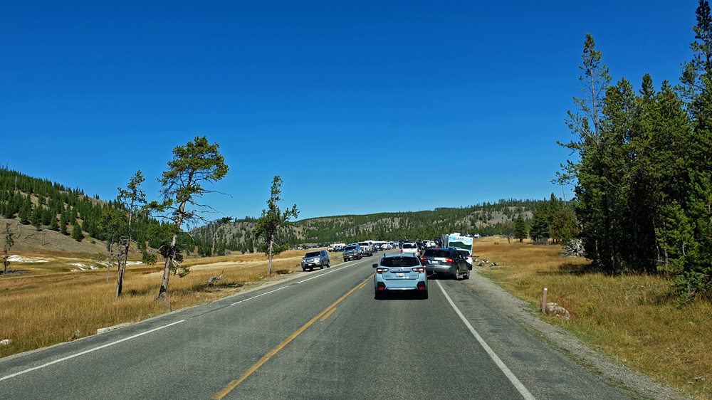Wie schon im Grand Teton NP festgestellt, ist während dieses Corona-Jahres wohl alles ein bisschen anders. Statt Touristenhorden aus China und Europa hat es nun sehr, sehr viele Amerikaner, die ja fast nirgends sonst hinkönnen. Und da ausser Europa, China und Brasilien die meisten Länder keinen Corona-Einreisebeschränkungen unterliegen, kommen zahlreiche Touristen aus anderen Ländern dazu (nach dem, was wir gehört haben, wohl vor allem Russland und nicht-chinesische asiatische Staaten). Zudem sind einige Campgrounds geschlossen. Dies führt dazu, dass einerseits die offenen Campingplätze bis Saisonende im Oktober komplett ausgebucht und die «first come-first serve»-Stellplätze der beliebteren Orte bereits morgens um 7.46 h voll sind.