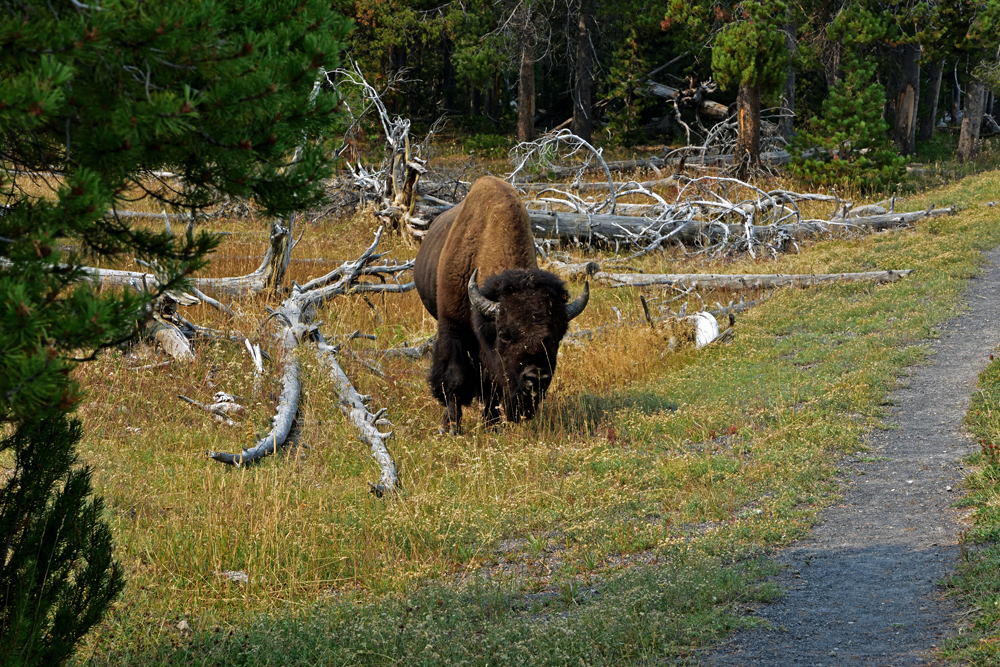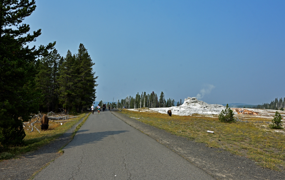 Unser grösstes Privileg ist die Zeit, weshalb wir während einer Woche (ausser am Wochenende) jeden Tag in den Yellowstone hineinfahren, um uns jeweils nur eine oder zwei Attraktionen (sprich: eines der Geyser-Becken bzw. Grand Canyon of the Yellowstone) anzugucken, bevor wir uns wieder in die Einsamkeit und Ruhe „unserer“ Waldlichtung zurückziehen.