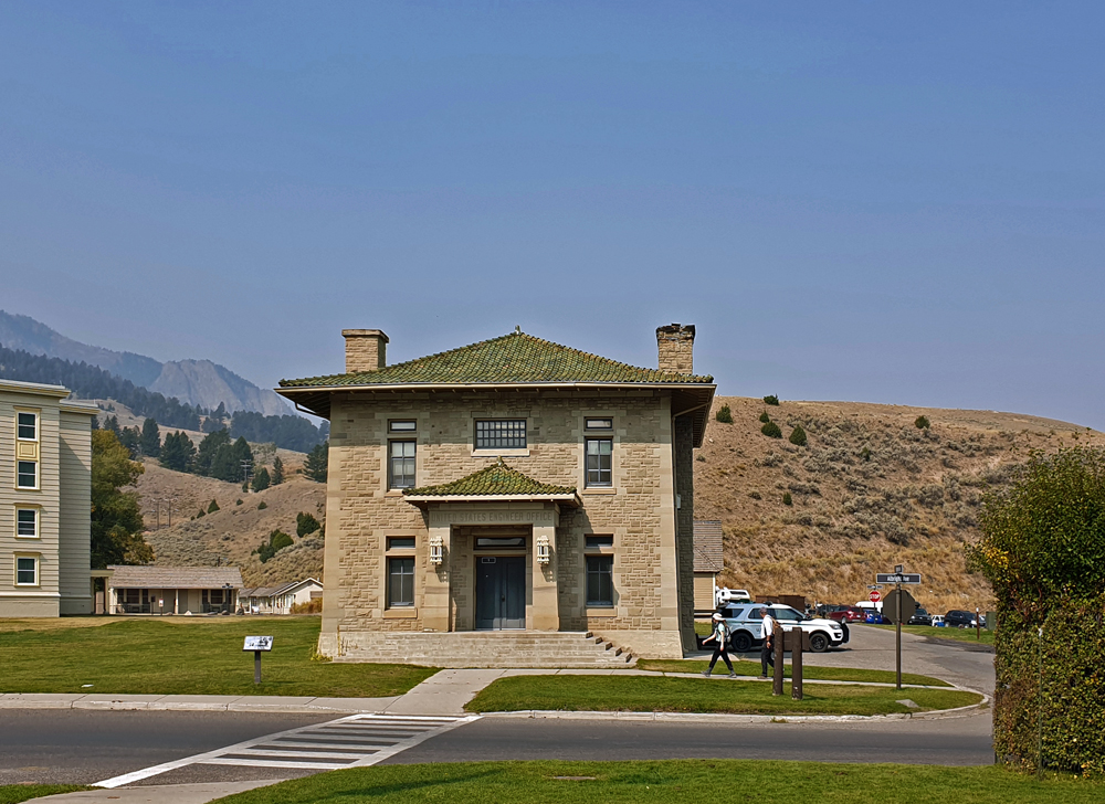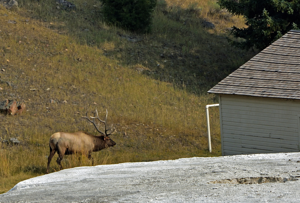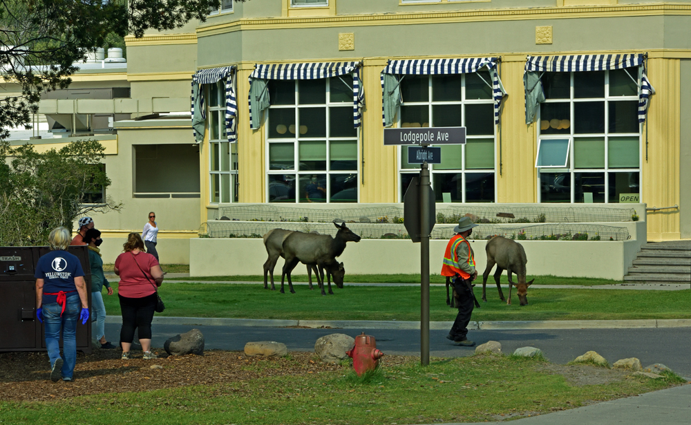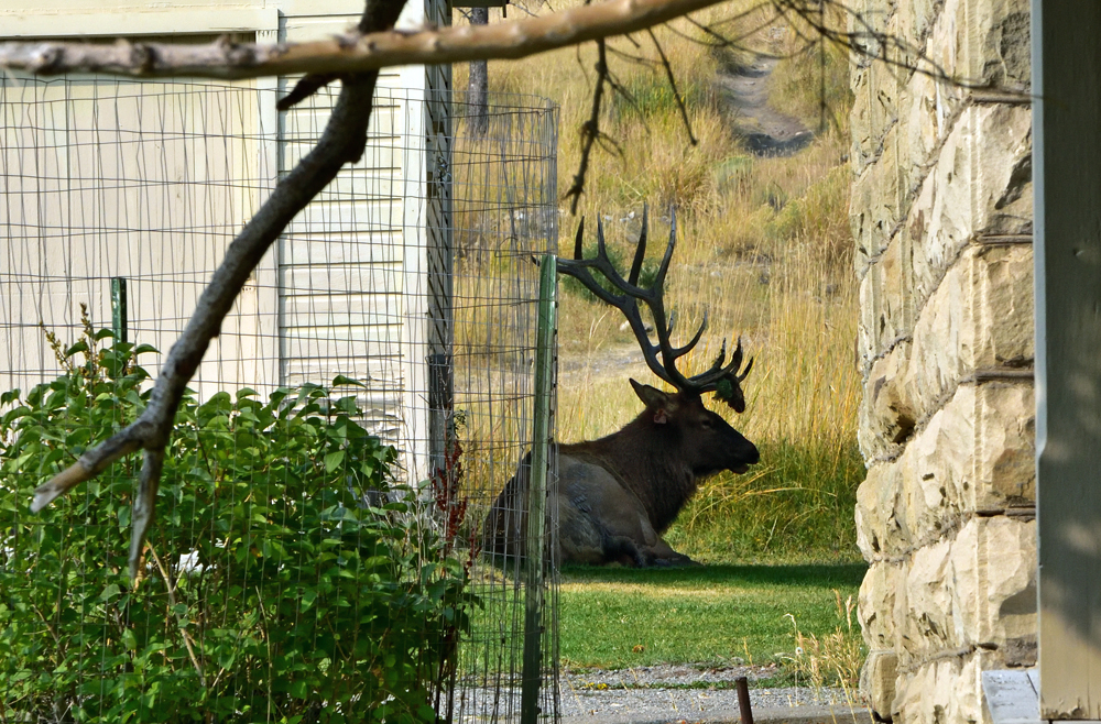 Im Ort selber ist aber alles beim Alten – die Wapitis machen es sich auf den schön gepflegten Rasen gemütlich und Ranger schützen Tiere und Touristen voreinander. Als wir nach der Besichtigung des Fort Yellowstone wieder zu unserem Auto zurückkehren, werden wir von einer netten Familie von Ex-Schweizern angesprochen, die seit mehr als 15 Jahren in Colorado leben, und tauschen uns eine ganze Weile aus.