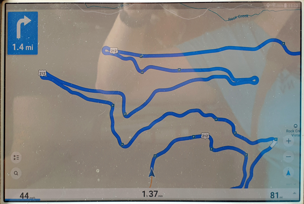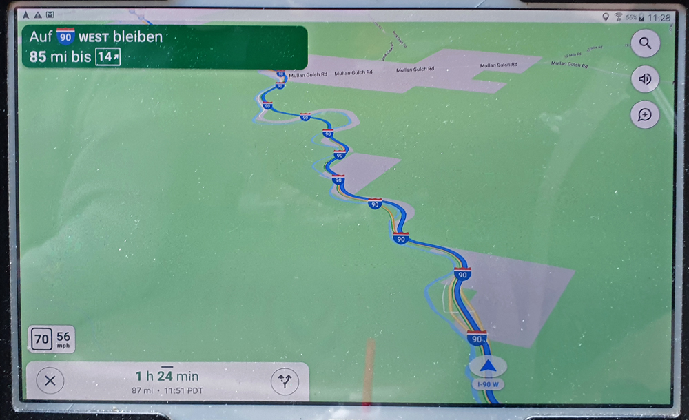 Oh, well. Es war ein netter Ausflug durch einen wilden Wald, den wir jetzt nochmals in umgekehrter Richtung durchfahren, um wieder zur I-90 zu gelangen.