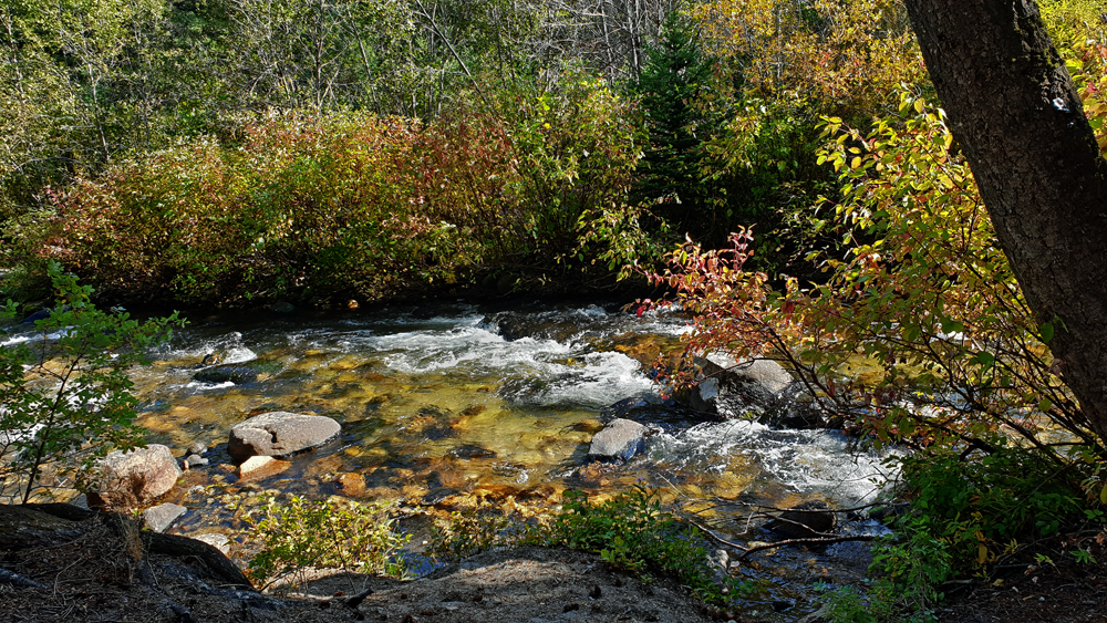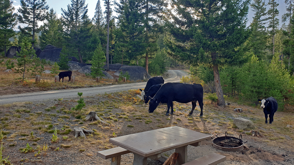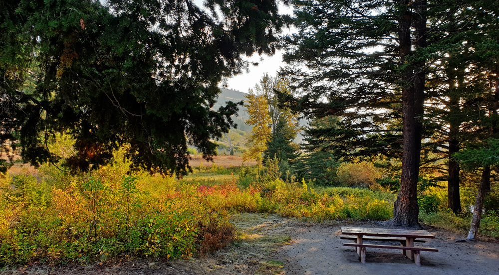 Immer noch erschüttert fahren wir zum Racetrack Campground nördlich von Anaconda, einem anderen (gratis) Campingplatz, der sehr idyllisch am gleichnamigen Bach liegt. Wir sind nach der Saison da und haben den friedlichen Platz fast komplett für uns alleine.