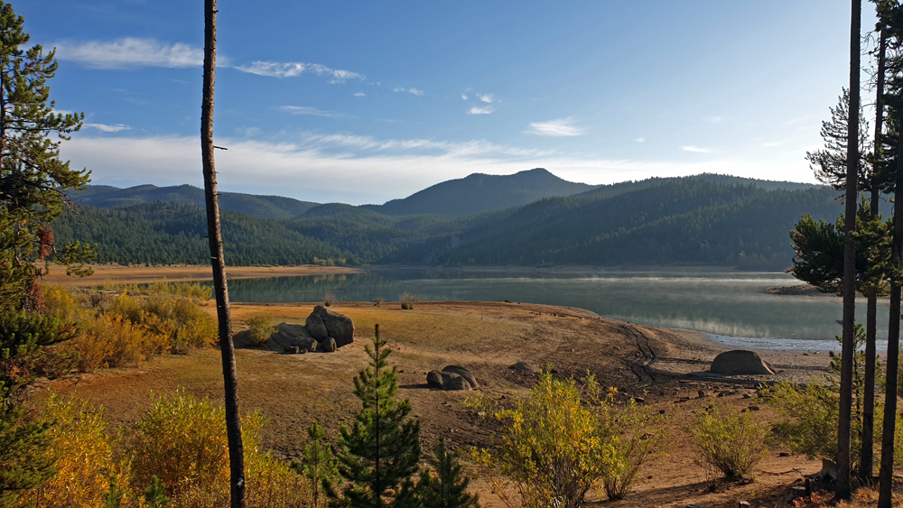 Vor Butte biegen wir nach Norden in den Beaverhead-Deerlodge National Forest ab, um zu übernachten. Wir folgen diversen Erdpisten auf der Suche nach einem geeigneten Platz. Es gäbe einige, die in Frage kämen, doch sind diese schon durch mehr oder weniger grösseren Gruppen besetzt. Andere Plätze liegen uns zu nahe an der sehr staubigen Strasse. Schliesslich werfen wir auf einem einfachen NF-Campground Anker, der direkt am hübschen, mit speziell geformten Felsbrocken bestückten Delmoe-Stausee liegt.