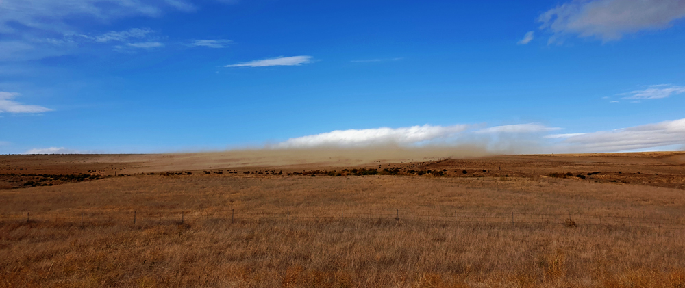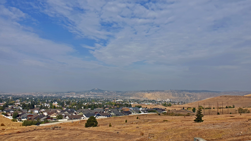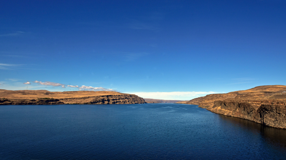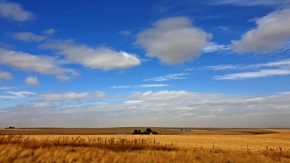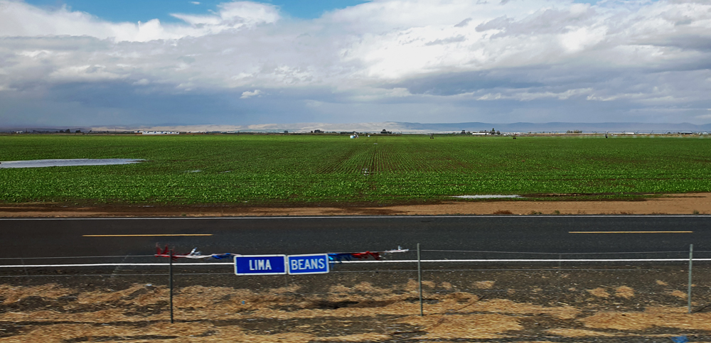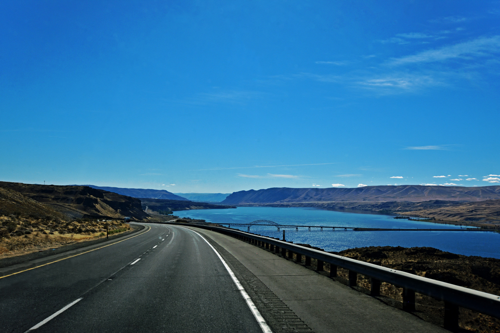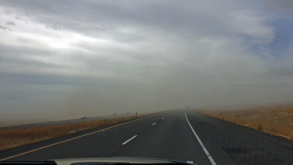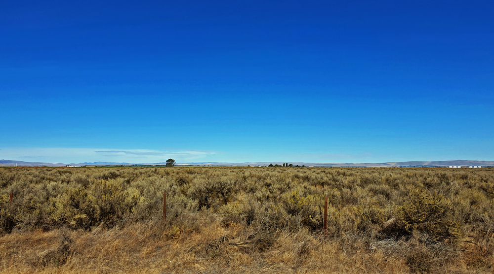 Nach Coeur d’Alene überqueren wir auch noch die Grenze zu Washington und gelangen wieder auf das grosse und relativ flache Columbia Plateau. Hier, im Schatten der Kaskadenkette, verschwinden die Wolken bald. Dafür wehen dichte Staubschwaden von den abgeernteten Feldern über die Autobahn.