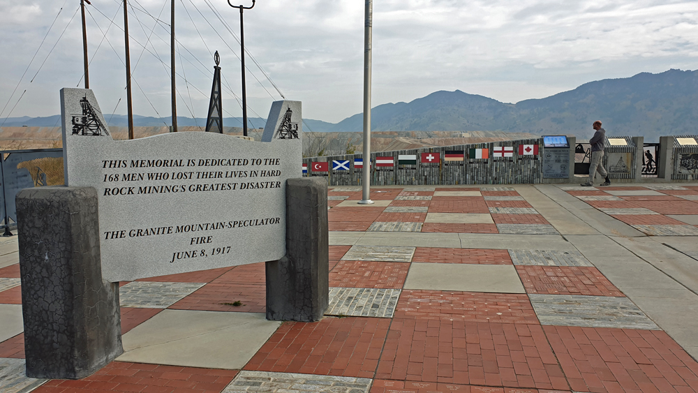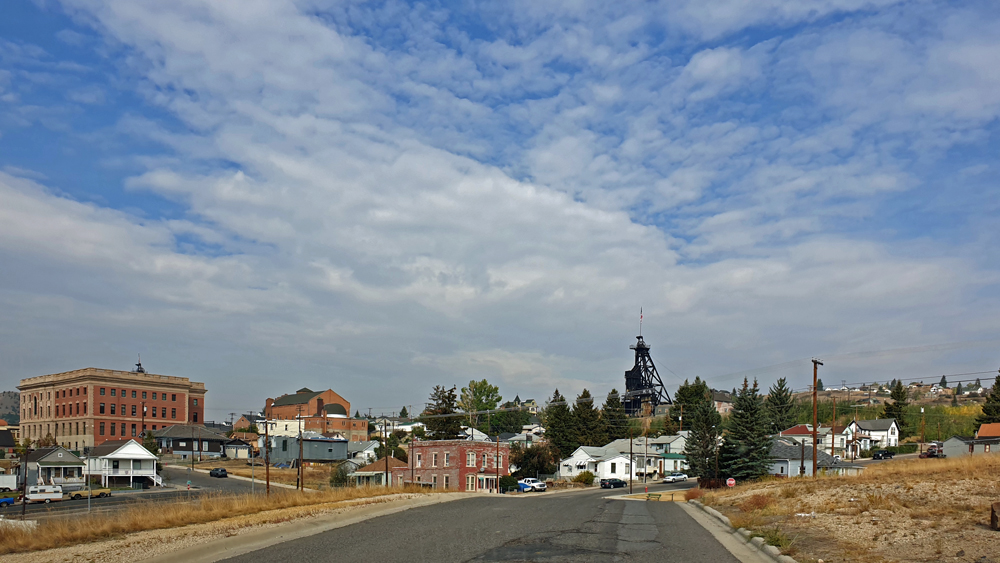 In der Bergbaustadt Butte machen wir eine kleine Stadtrundfahrt und besuchen das Granite Mountain Speculator Mine Memorial, das dem Andenken an die Bergleute gewidmet ist, die beim grossen Minenfeuer von 1917 und bei anderen Unfällen in den zahlreichen Minen in und um Butte ums Leben gekommen sind. Von diesem beeindruckenden Platz aus kann man auch einen Blick auf die noch stehenden Strukturen der alten unterirdischen Minen und die offene Grube des aktuellen Kupferabbaus werfen (seit 1985 Continental Pit als Nachfolgerin der 1982 aufgegebenen Berkeley Pit, die heute leider vor allem wegen ihres schwefelsäurehaltigen Sees bekannt ist).
