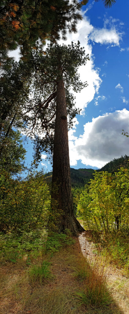 Hinter Missoula ziehen wir uns zum Übernachten an den Fish Creek zurück, wo auch die mit rund 1.8 m Durchmesser und 61 m Höhe grösste Ponderosa Pine Montanas zu bestaunen ist.