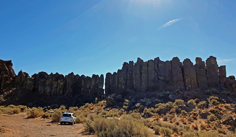 Auf unserem Abstecher in die Frenchman Coulee an den Columbia River hat es dagegen sehr viele Menschen. Anhand der zahlreichen grossen Fahrrad-Anhänger schliessen wir auf ein Radrennen, das hier gestern stattgefunden haben muss. «Lieber sie als ich» geht mir angesichts der sehr steilen Strasse durch den Kopf. Aber auch ohne Rad könnte man sich hier sportlich betätigen: es gibt einen Weg zum Wasserfall, am Columbia River ist Fischen und Bootfahren angesagt und die steilen Basaltsäulen in der Coulee werden sehr gerne zum Klettern genutzt.