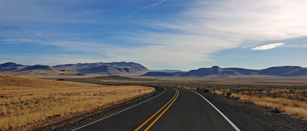 Auf Kiesstrassen geht es vorbei an einsamen Farmen und zur nicht weniger einsamen, aber asphaltierten OR-205, die uns zum 47-Seelen-Ort Denio an der Grenze zu Nevada führt. In Denio Junction versuchen wir, etwas Milch zu bekommen, da uns die Vorräte auszugehen drohen. Aber im winzigen Laden, der einem – am heutigen Sonntag gut besuchten – kleinen Café angeschlossen ist, gibt es nur ein paar Chips und Büchsen.