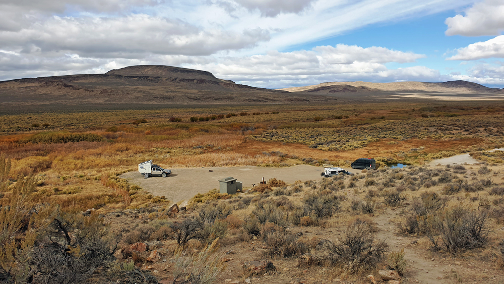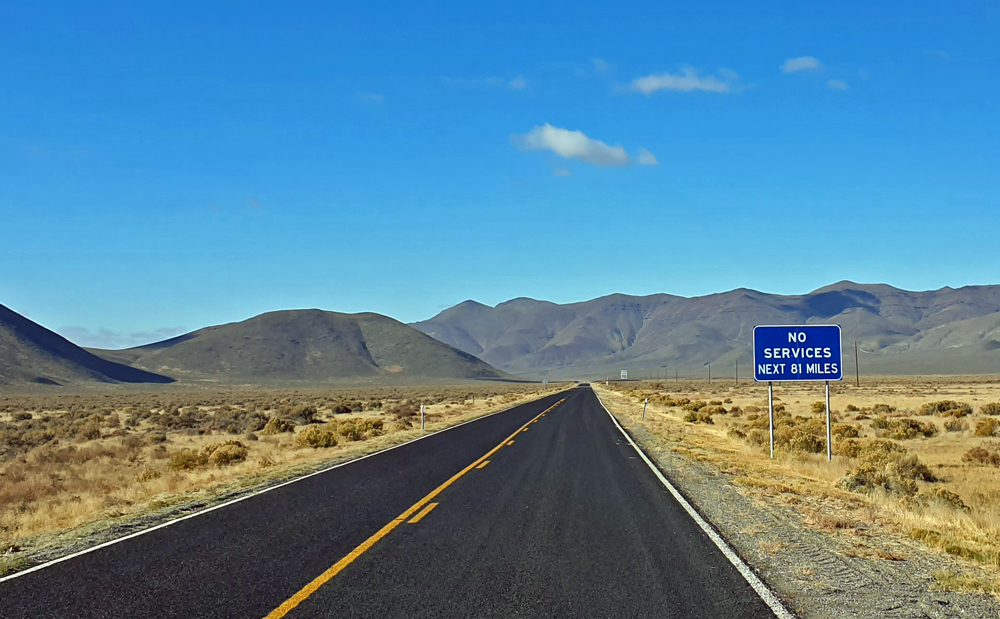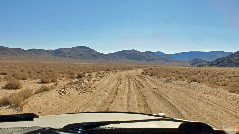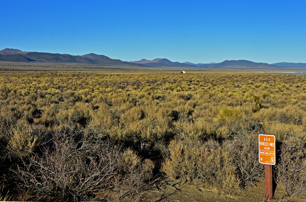 Mitten im Nirgendwo biegen wir von der asphaltierten NV-140 auf eine Piste ab, die uns durchs Sheldon National Wildlife Refuge zur Black Rock Desert bringt. Das Wildschutzgebiet ist so abgelegen, dass (gemäss Wikipedia) innerhalb seines Gebiets der Punkt liegt, der innerhalb der «Lower 48» der USA am weitesten von einem McDonald’s Restaurant entfernt ist (das wären 185 km) .