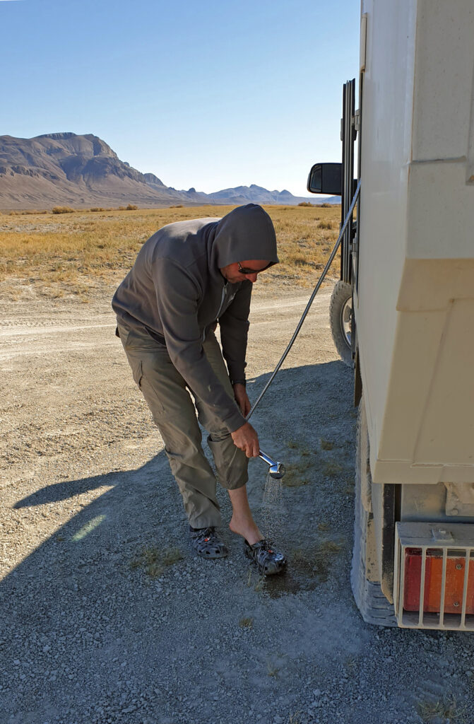 Während unserer Zeit im Saline Valley erfreuen wir uns an der heissen Dusche und – nach Einbruch der Dunkelheit – auch am Volcano-Pool, der «gesetzeswidrig» von einigen anderen Campern in Betrieb genommen wurde (der Wizard Pool ist leer und lässt sich leider auch nicht füllen).