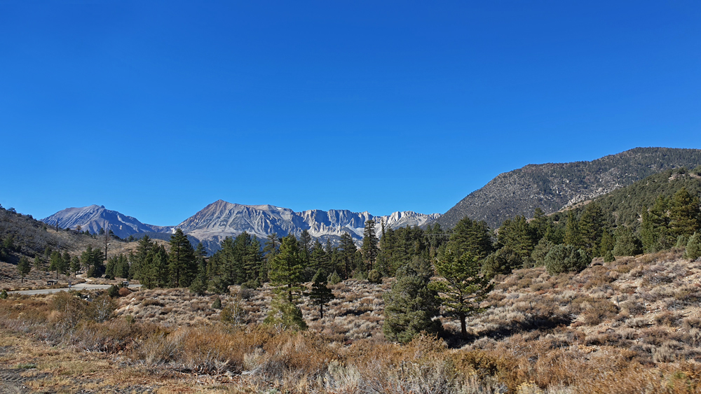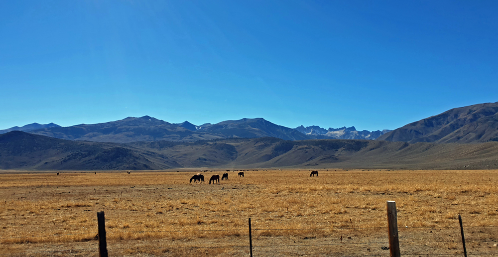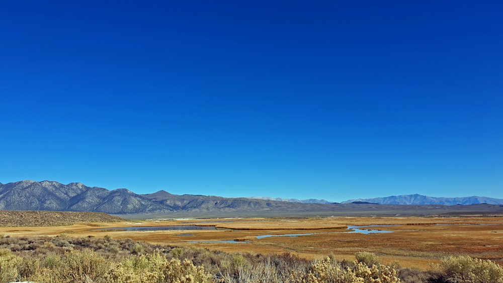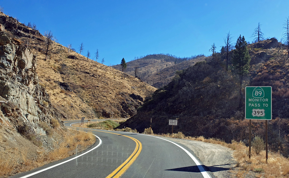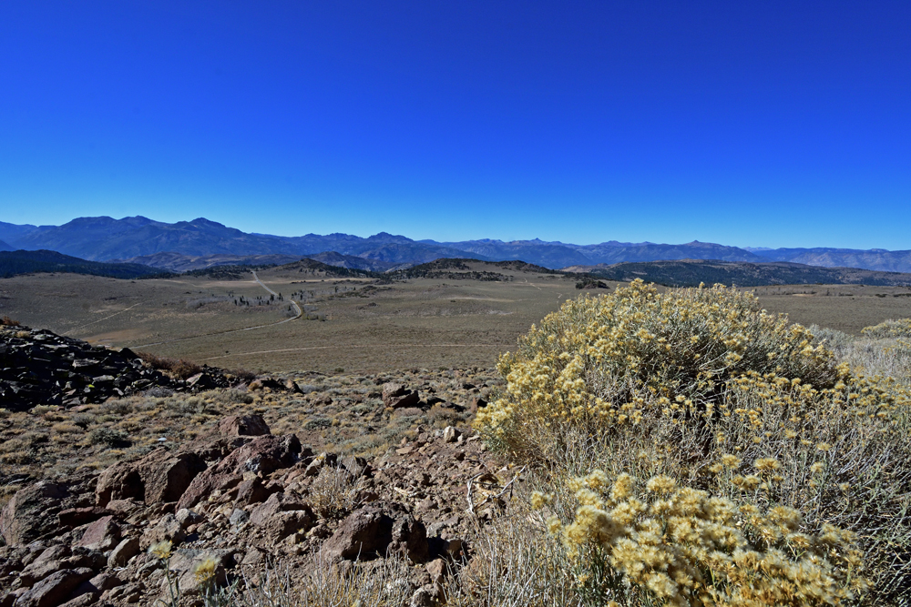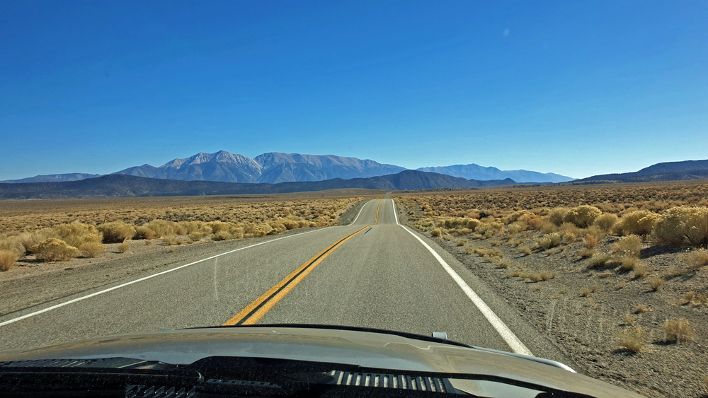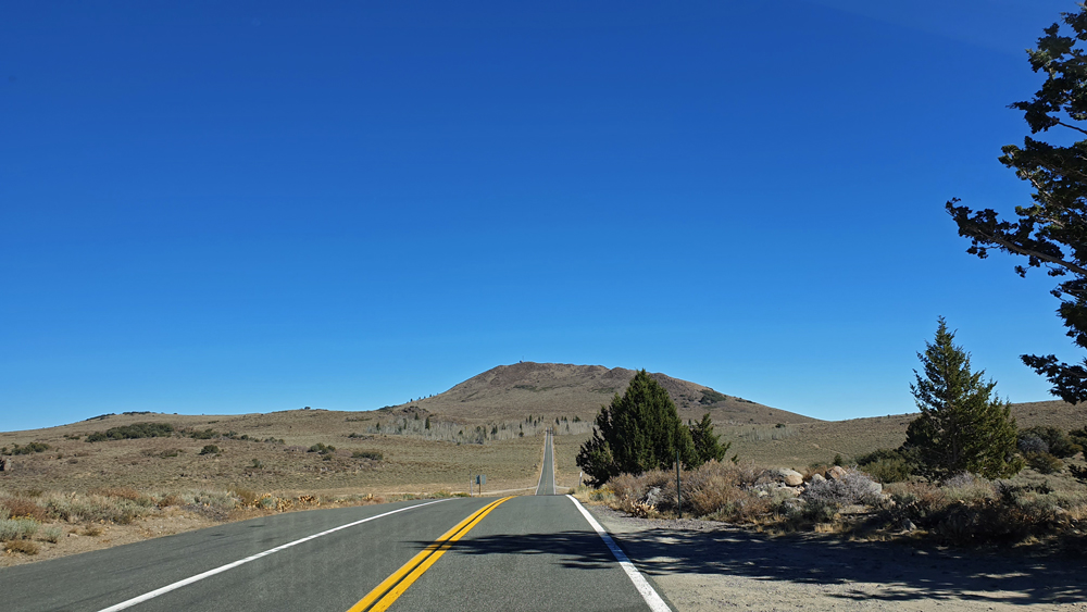 Am nächsten Tag folgen wir der CA-89 über den 2’534 m hohen Monitor Pass. Ein kleiner Abstecher führt uns auf den 2’737 m hohen Leviathan Peak, von wo aus wir einen guten Blick über den Osthang der Sierra Nevada und die vorgelagerten Täler haben. Wir fahren wieder gut 600 Höhenmeter hinunter und folgen dann der US-395 nach Bridgeport.