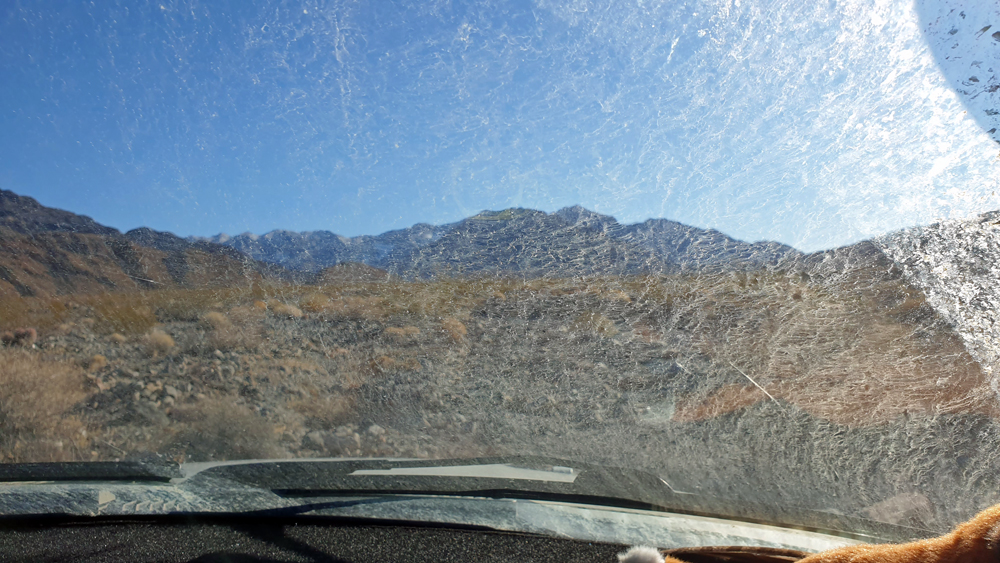 Wir fahren über die NV-160 und den Mountain Springs Summit (1680 m ü. M), wo wir bereits den ersten Schnee entdecken, nach Las Vegas. Hier reinigt Ozy unser Fahrzeug erst ein Mal gründlich, da wir es ja dann einstellen wollen.