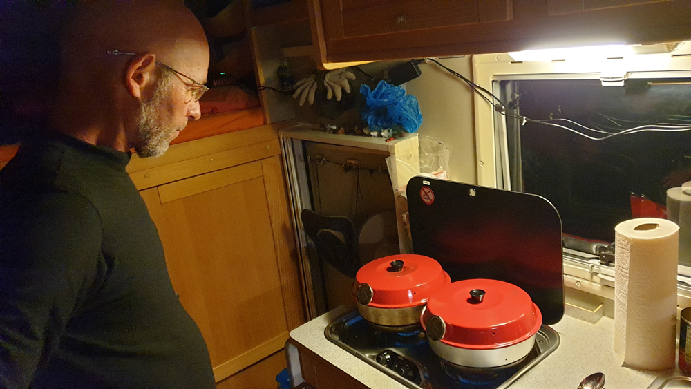 Es bildet sich sogleich eine Art Routine heraus, die wir die nächsten 12 Tage beibehalten werden: gemütliches Schwatzen und Lachen (und Tech-Talk unter den Männern), zwischendurch Fahren, dann Büro und am Abend essen wir gemeinsam im D-Hai, wobei Hermi oftmals die herrlichsten Gerichte zaubert. Dann wird weiter geschwatzt und gelacht – manchmal bis in die späteren Abendstunden und am nächsten Morgen geht es nach einem gemütlichen Frühstück und zwischen 9 und 10 h weiter.