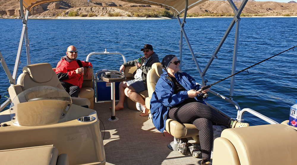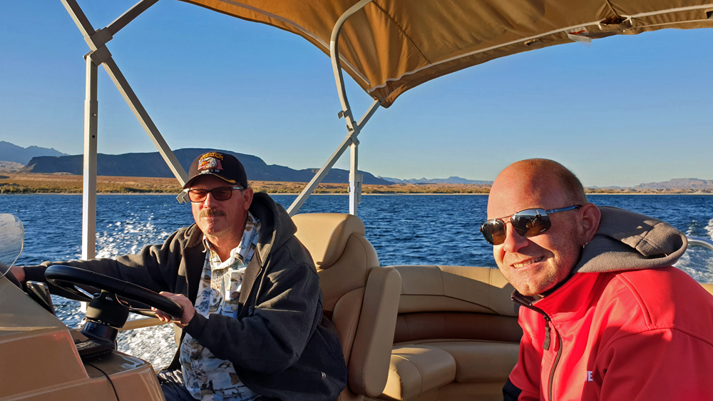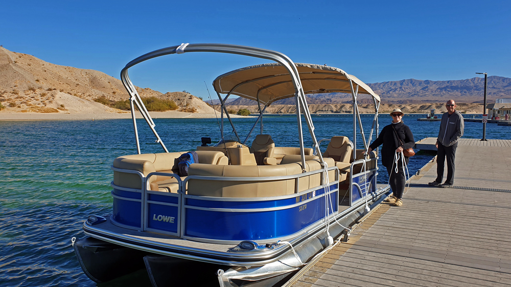Die verbleibende Zeit bis zu unserem Heimflug dürfen wir wieder bei Steven und Vicki verbringen, die uns nach Strich und Faden verwöhnen. Die beiden nehmen uns mit ihrem neuen Boot wieder für einen Tag mit auf den Colorado River. Das Boot vom «pontoon type» ist wahnsinnig bequem und die Bauart vereinfacht das Anlanden an den Strand sehr. Wir geniessen den Tag auf dem Wasser und mit einem gemütlichen Picknick am Strand sehr.