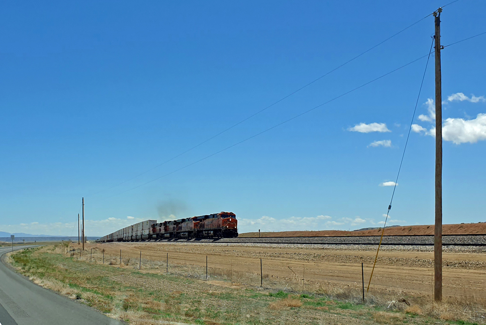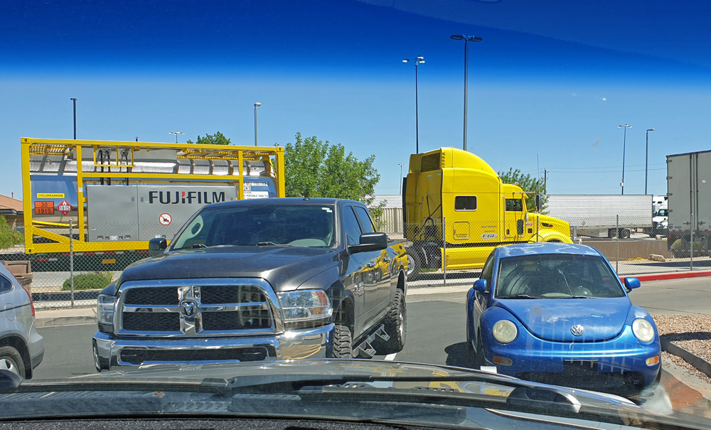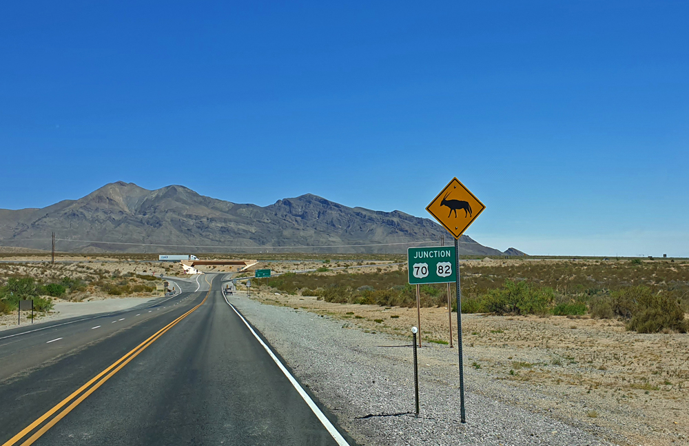 Unser Weg führt uns nun auf der – nach langem und ausführlichem iOverlander-Eintrag – «dangerous road» und «death trap» US-285 nach Südosten. Es hat viel Verkehr, vor allem auch Lastwagen im Zusammenhang mit der Öl- und Gasindustrie, und das Tempolimit auf der zwei- bis dreispurigen Strasse beträgt 120 km/h (wird von fast allen jeweils noch um 15 km/h überschritten), aber wir empfinden es als nicht halb so schlimm, wie geschildert und überleben die Strecke ganz gut. Wir vertreiben uns die Zeit, in dem wir zählen, wie viele Fahrzeuge mit einen GSM-Verstärker (weBoost) ausgerüstet sind – in dieser Gegend gut ¾.