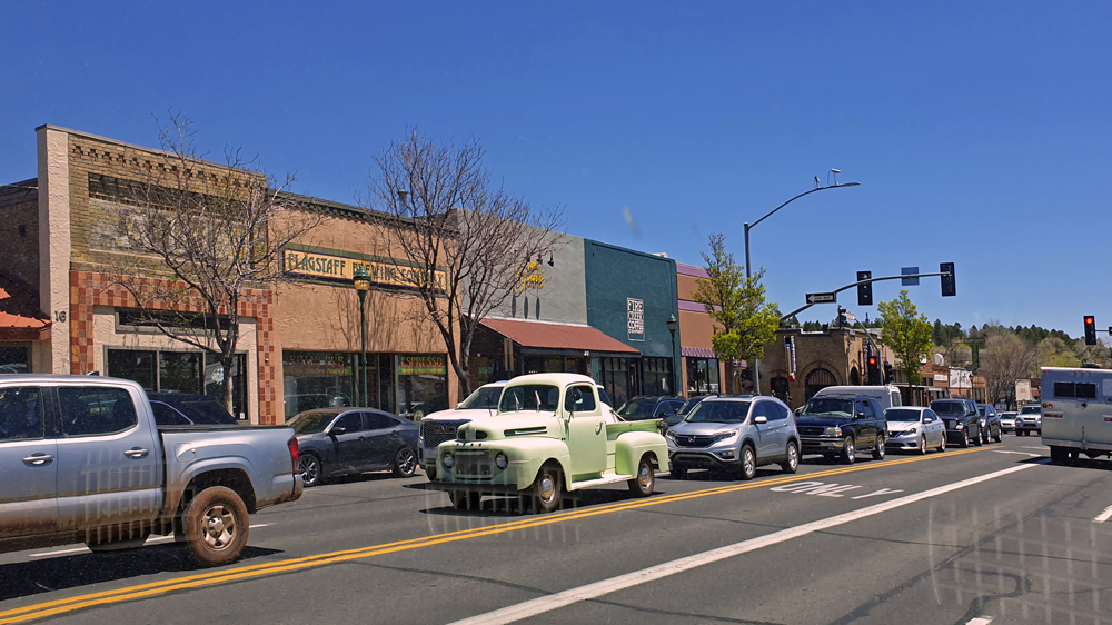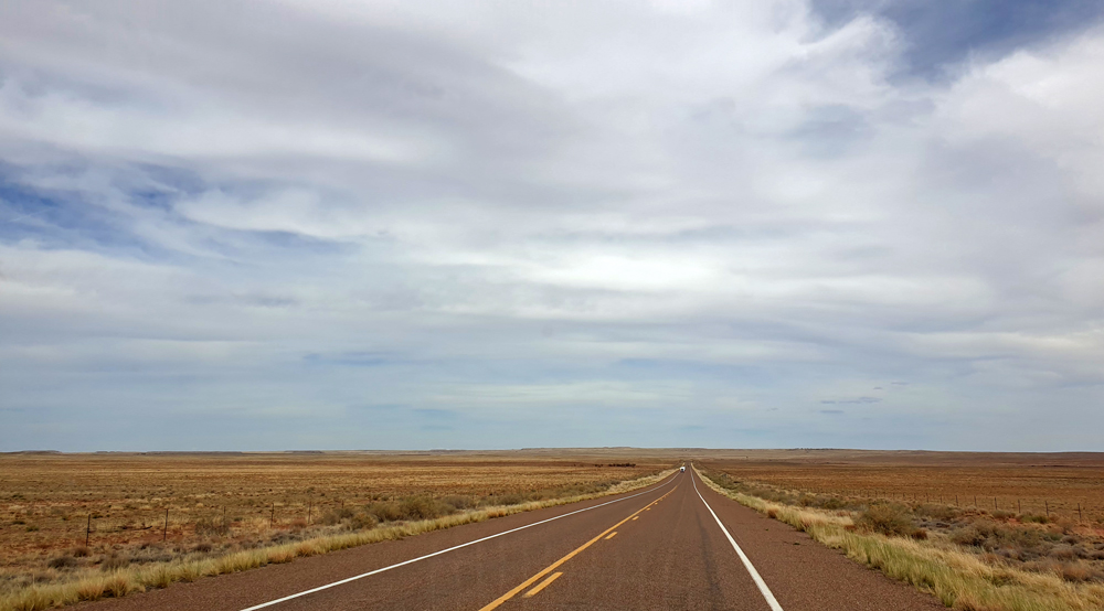 Nach einer Übernachtung im Wald am Fuss der San Francisco Peaks geht es weiter auf der I-40, die ab Flagstaff der Route 66 entspricht.
