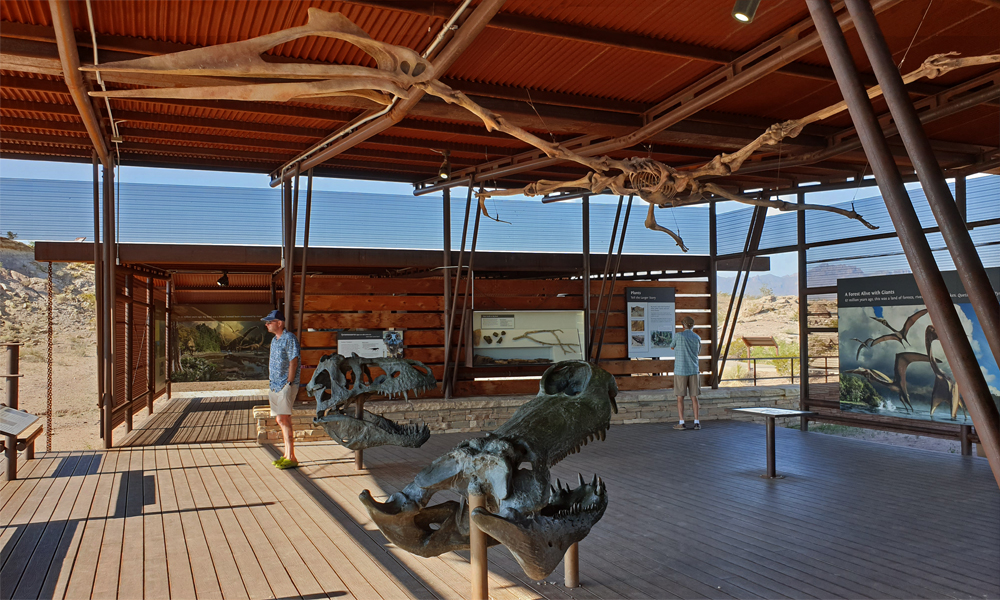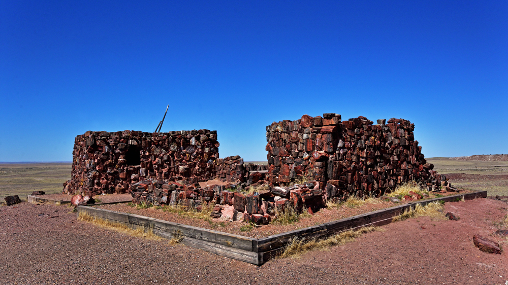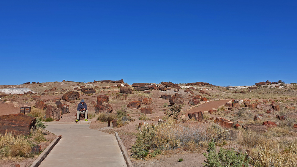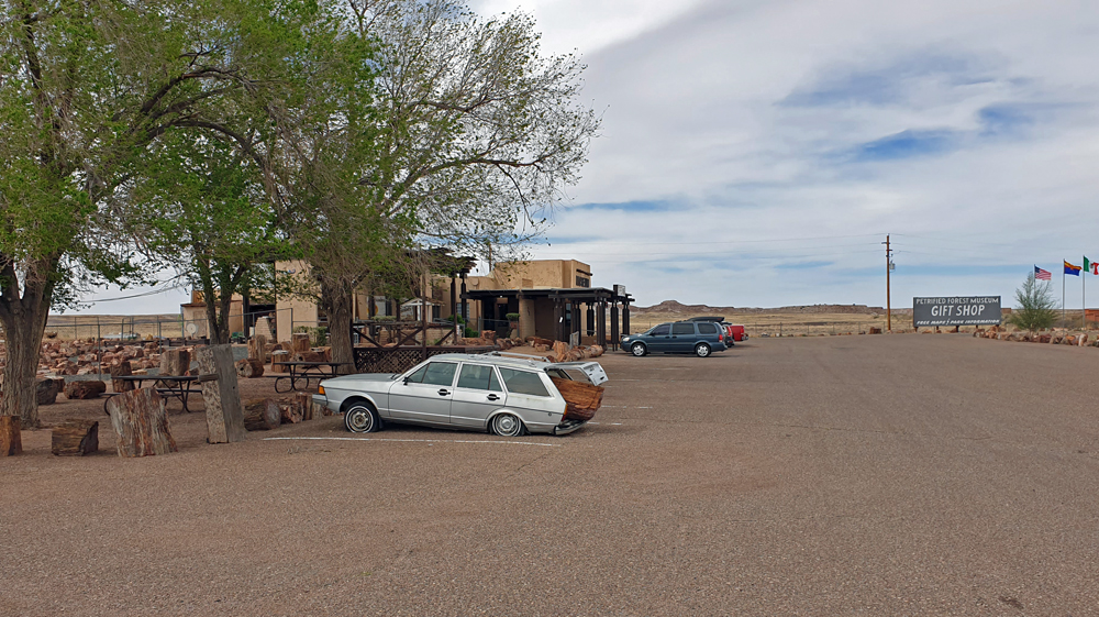Ausnahmsweise ist im Nationalpark ein Teil der Ausstellung im «Rainbow Forest Visitor Center» geöffnet, so dass wir uns vorgängig über Flora und Fauna und das Zustandekommen der verschiedenfarbigen Schwemmschichten und Fossilien aus der Trias (vor ca. 225 Mio. Jahren) sowie die spätere Besiedlung informieren können. (Das Visitorcenter des Painted Desert-Abschnitts ist dann wieder geschlossen, nur der Museumsshop ist geöffnet…).
