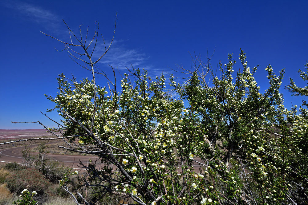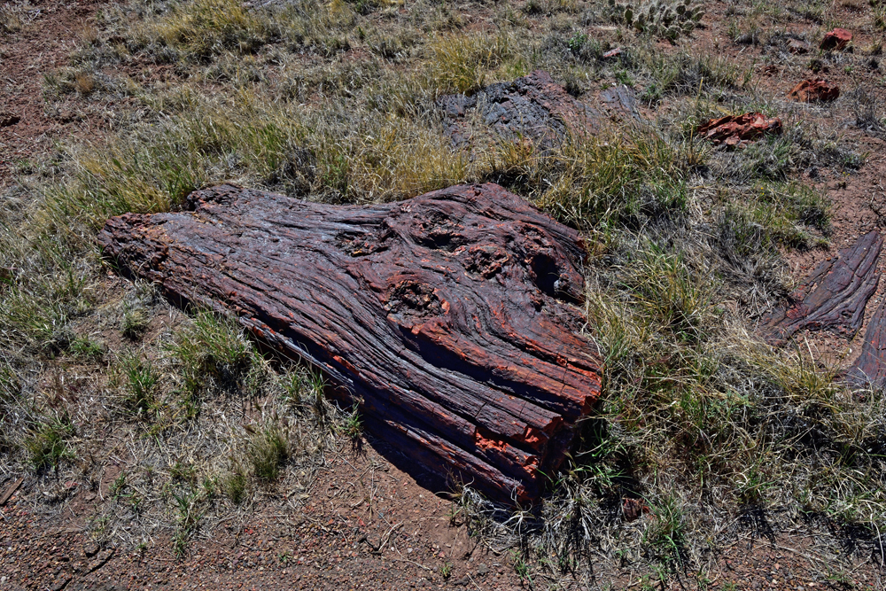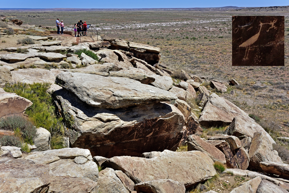 Auf diversen Trails bestaunen wir dann die teils riesigen Stämme in Natura, an denen sich manchmal sogar noch Astknoten oder Frassspuren von Insekten erkennen lassen. Manche der versteinerten Stücke wirken aufgrund ihrer Färbung und glänzenden Oberflächen komplett unnatürlich, andere sehen aus, als ob sie noch aus Holz bestünden. Ausserdem gibt es im Park auch noch Pueblo-Ruinen und Petroglyphen zu entdecken (unter den letzteren mehrere mit Kalender-Funktion), und Aussichtspunkte bieten immer wieder einen spektakulären Blick auf die sehr karge, aber dafür umso farbigere Painted Desert.