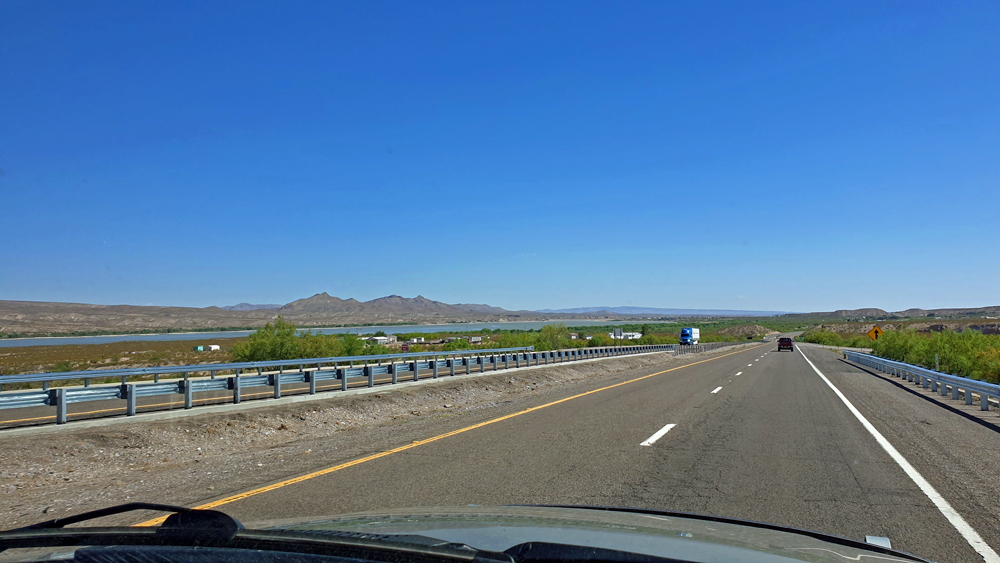 Die Interstate überwindet einige Stufen und führt durch eine karge Gegend, was uns viel Musse für unser Hörbuch gibt… Albuquerque wird von uns grosszügig umfahren und wir können unsere Augen wenig später am grünen Tal des Rio Grande laben.