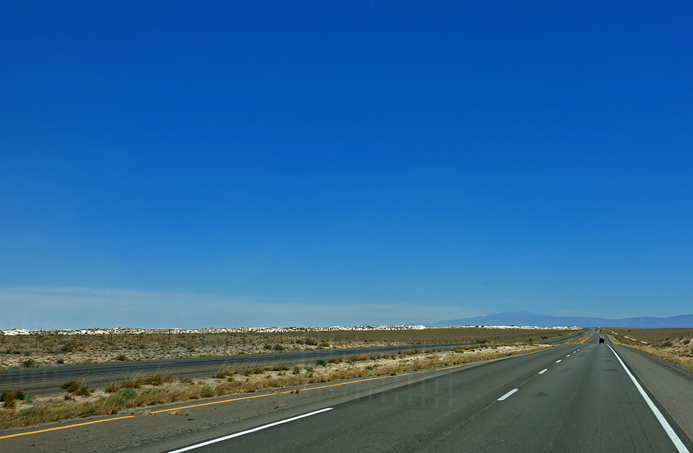 Ein Versuch, auf der Weiterfahrt das Freilichtmuseum der White Sands Missile Range anzugucken, scheitert: „Wegen zu geschlossen“ – Covidmassnahmen lassen wieder mal grüssen… Erst später erfahren wir von unseren Reisefreunden Fabian und Marion, dass wir sowieso kein Glück gehabt hätten, da nur noch US-Bürger die alten Waffen anschauen dürfen…