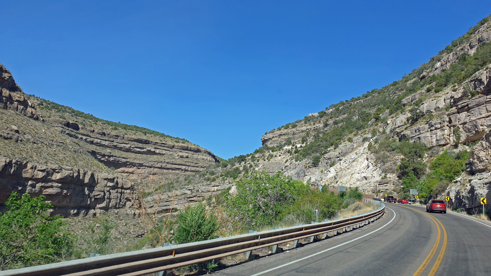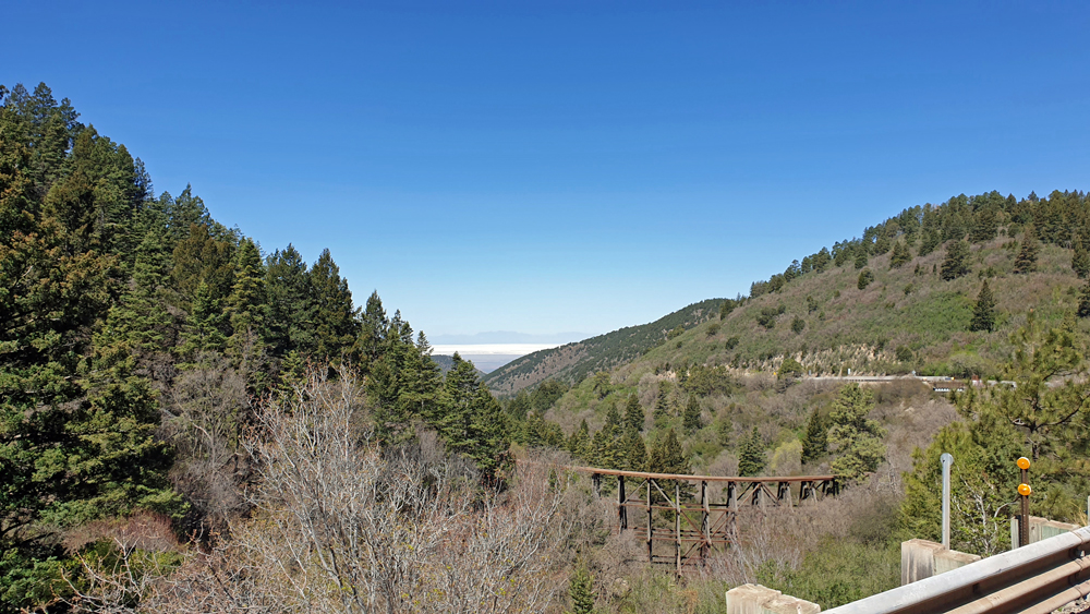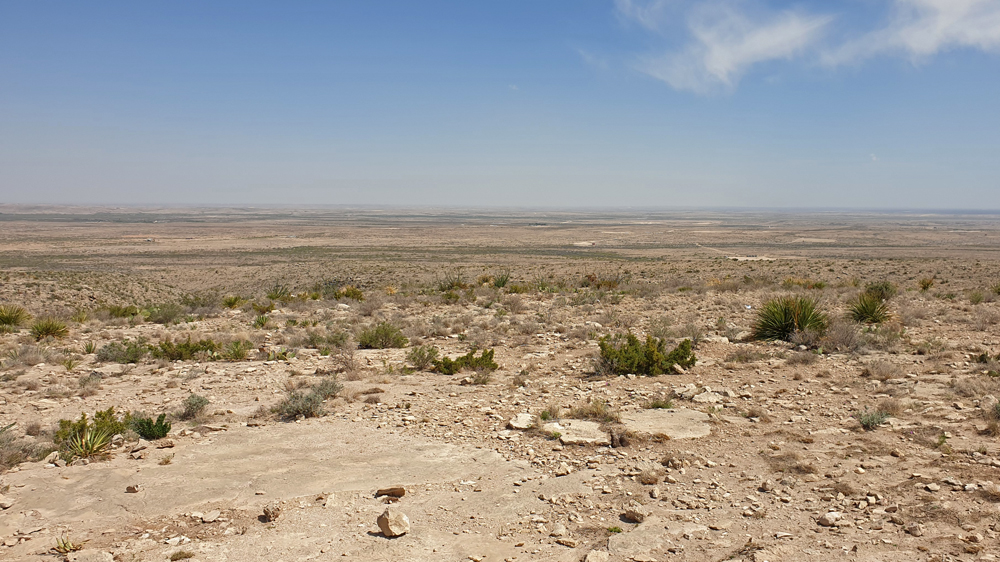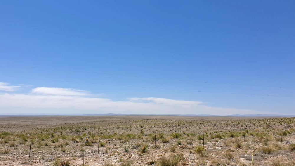 Auf der Weiterfahrt erhaschen wir noch einen schönen Blick auf den Mexican Canyon Trestle mit den White Sands-Dünen im Hintergrund und dann führt uns die Strasse wieder 1’500 m hinunter in die kargen Ebenen des Pecos River, die im Osten vom nicht minder kargen Llano Estacado begrenzt werden (auch eine Erinnerung an Karl May…).
