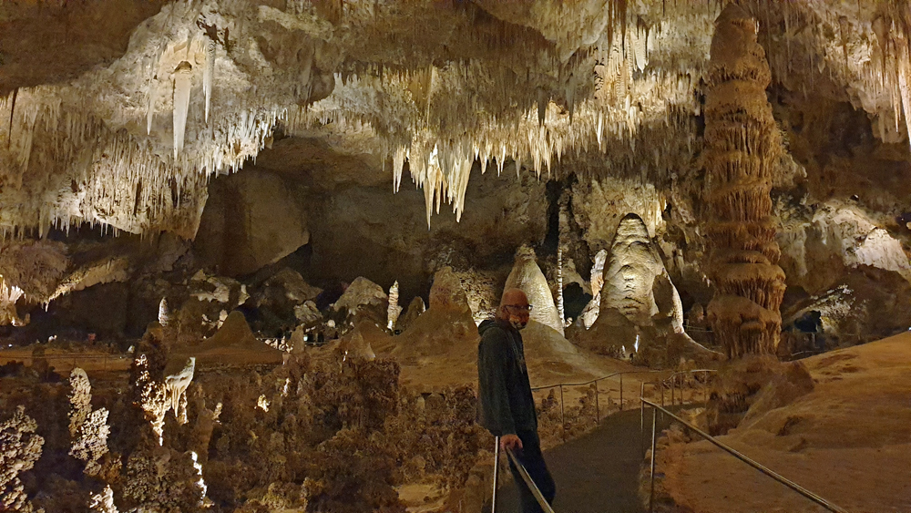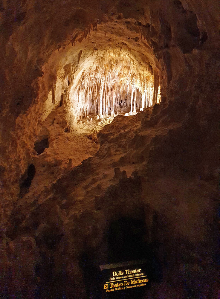 Am nächsten Tag fahren wir zu den Carlsbad Caverns. Auch hier sind Covid-Massnahmen in Kraft und wir mussten unser Ticket bereits 48 Stunden vorher reservieren, um ein stündiges Zeitfenster für den Eintritt in die Höhlen zu erhalten. Ich bekomme fast einen Herzinfarkt, als ich feststelle, dass wir zu spät sind! Aber Ozy gibt Entwarnung: irgendwie hatte sich mein Handy mit einem Tower in Texas verbunden, das eine Stunde voraus ist… Uff!