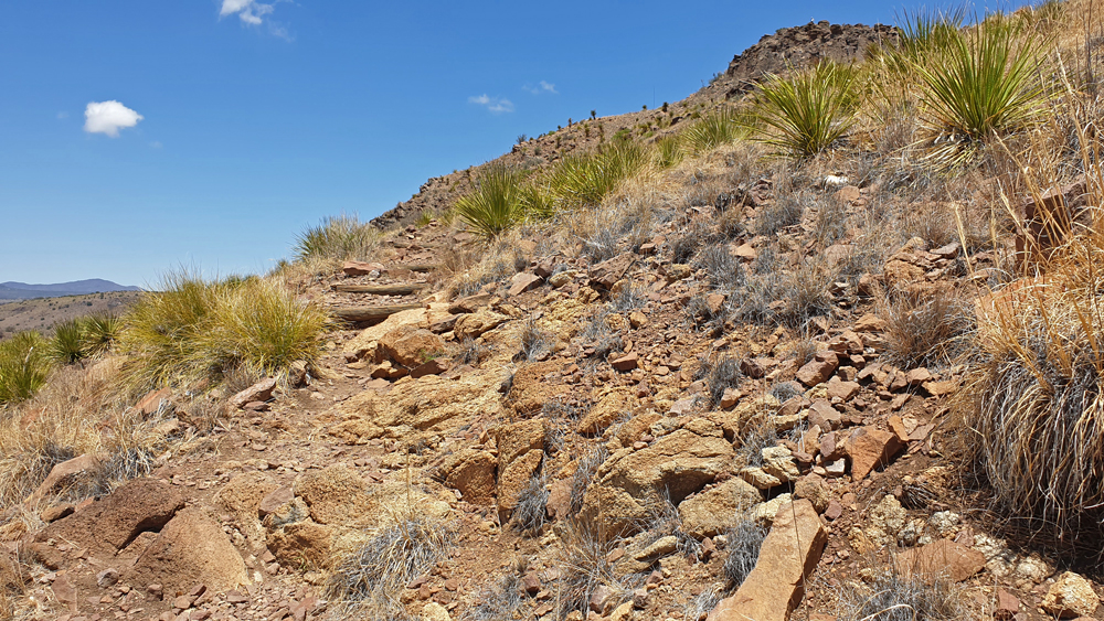 Ich unternehme eine Wanderung auf dem Skyline Drive Trail, von dem man einen schönen Blick auf die umliegenden Davis Mountains hat und die weissen Kuppeln des McDonald Observatoriums in der Sonne glänzen sehen kann. (Auf einen Besuch verzichten wir, da momentan keine «Star Party» stattfindet und der Besuch des Kitt Peak Observatoriums in Tucson, wo wir selbst durchs Teleskop sehen durften, vermutlich eh nicht zu toppen ist). Ich gehe bis zur anschliessenden Fort Davis National Historic Site und schleppe mich dann auf der ehemaligen CCC-Strasse wieder zurück ins Tal. Es war eine schöne, aber sehr lange und vor allem auch heisse Wanderung!