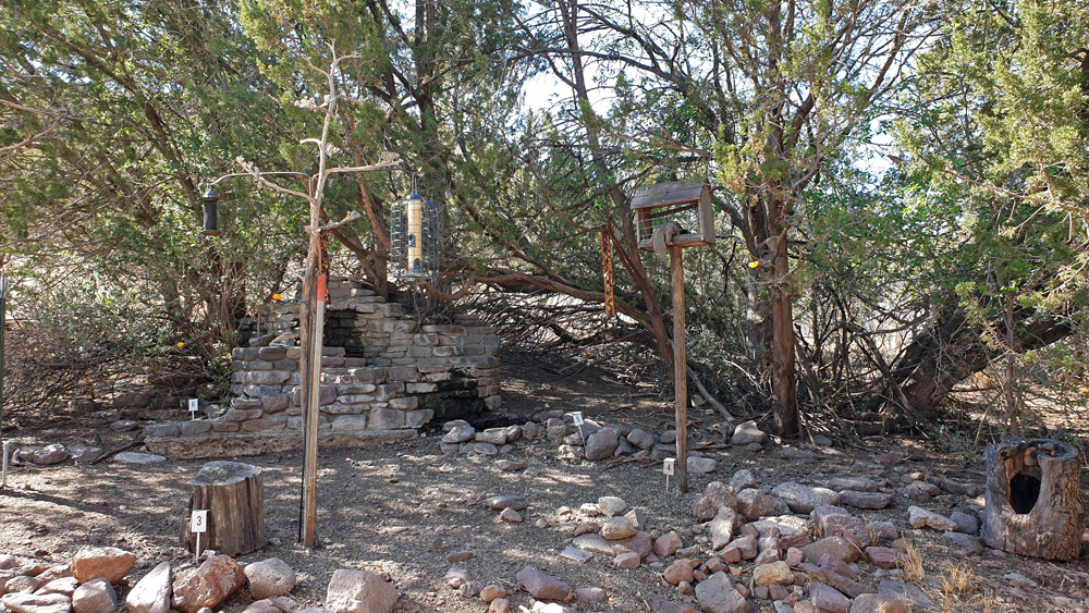 Als Privatperson ist das Füttern streng verboten, dafür gibt es zwei «Wildlife Viewing Shelters», wo man zusehen kann, wie sich die Kolibris, Tauben, Spechte und vielen anderen Vogelarten an den offiziellen Zuckerwasser-Spendern, Orangenschnitzen, in Stäben gesteckten Nüssen etc. laben und sich zwischendurch auch das eine oder andere Eichhörnchen ins Vogelhäuschen quetscht.