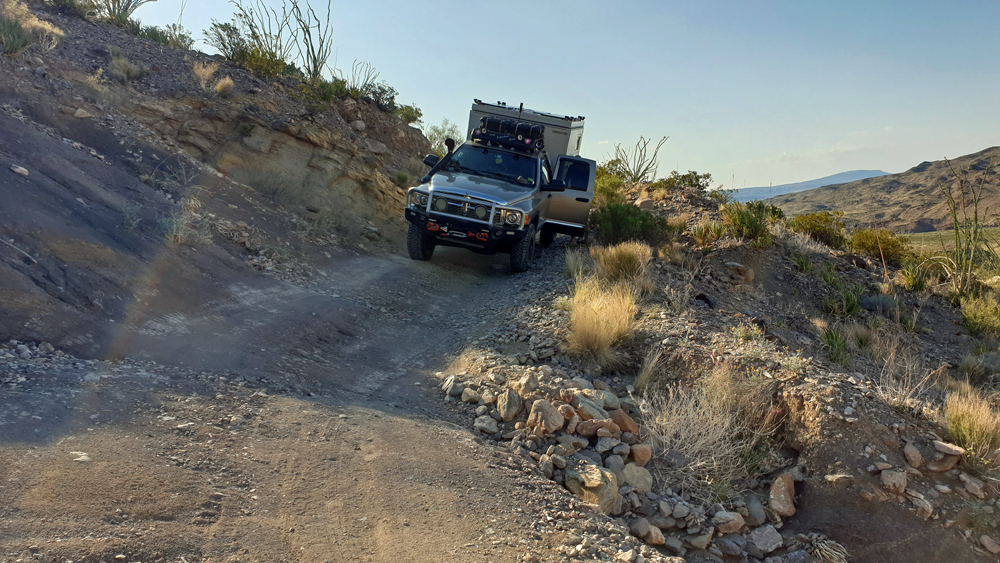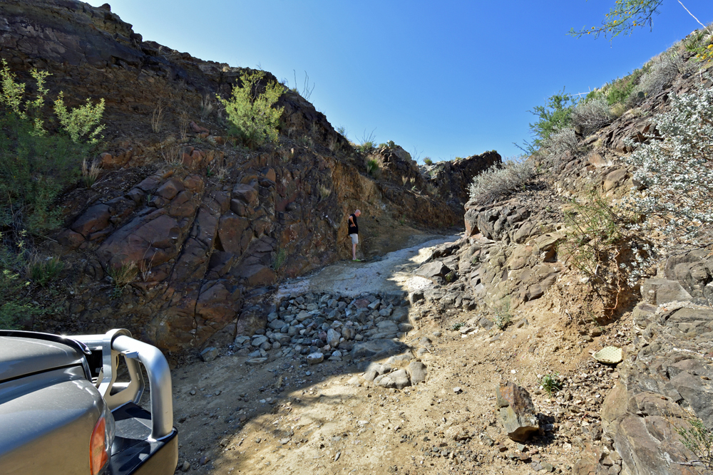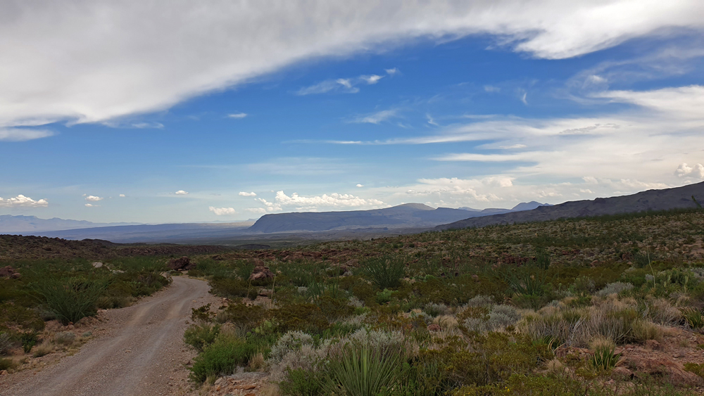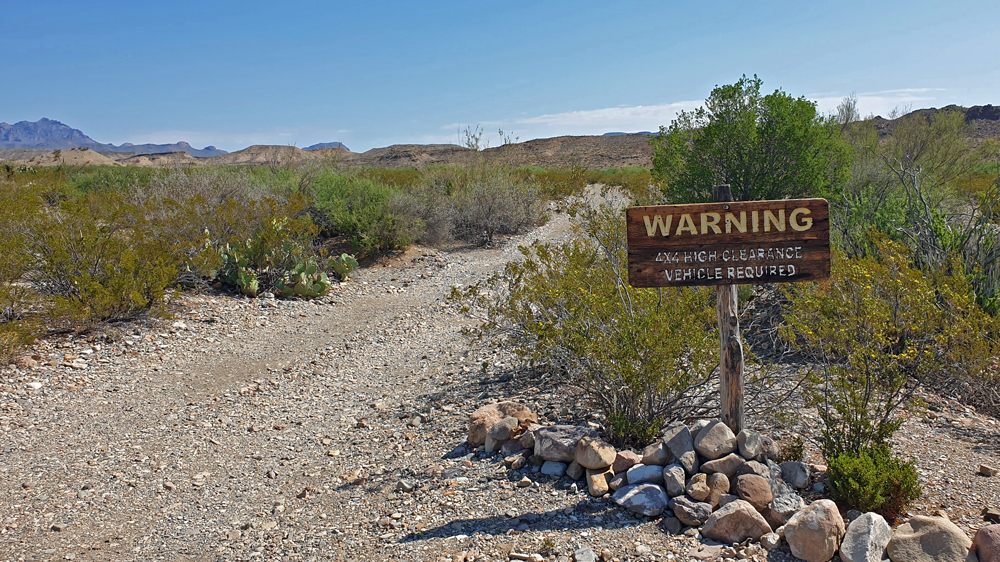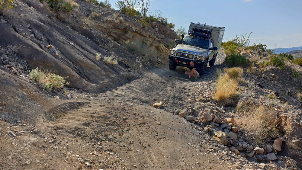 Nicht zuletzt gibt es viele Kilometer an «unimproved dirt road» wie z.B. die berühmt-berüchtigte Black Gap Road (als „nicht unterhalten“ gekennzeichnet), die rund 82 km lange River Road oder die – unbekanntere und obwohl angeblich unterhalten noch viel schlechtere – Old Ore Road. Ich hätte nie gedacht, dass das mal passiert, aber die «Strassen» im Big Bend NP haben Ozys Bedürfnis, üble Pisten zu fahren, mehr als gedeckt und er hat die Nase gestrichen voll!