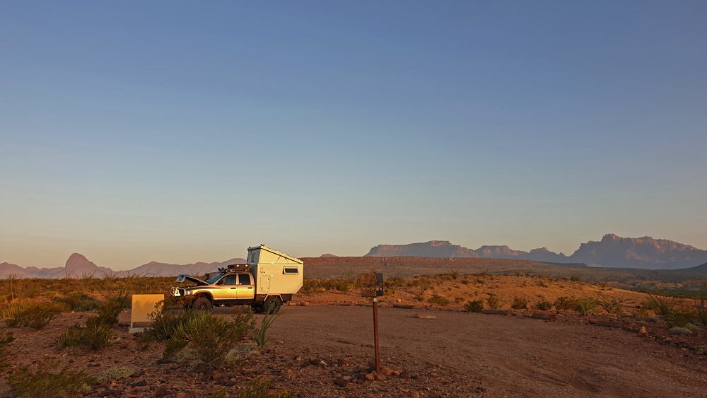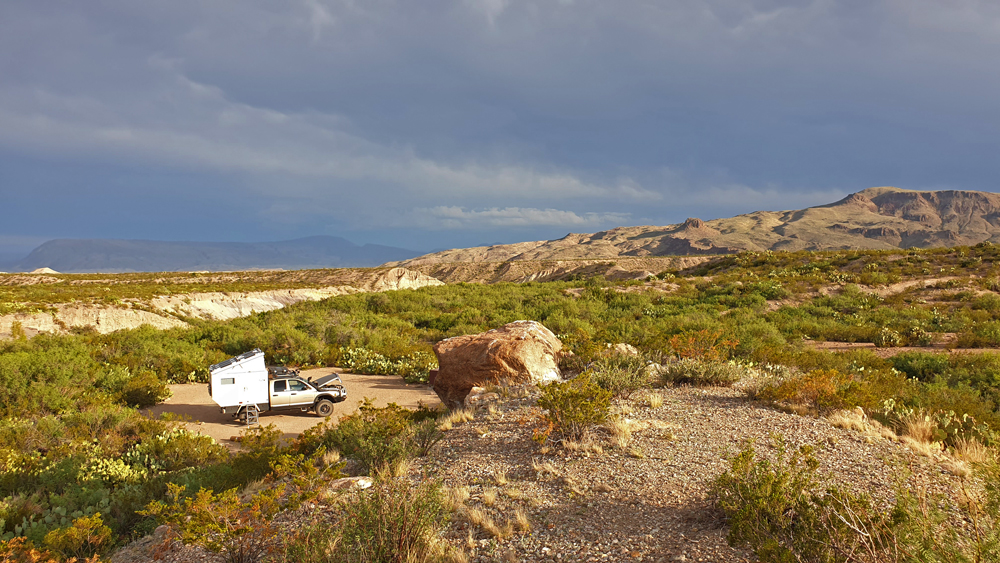 Schliesslich ist es uns aufgegangen: im Gegensatz zu uns, die die letzten beiden Jahre viel Zeit im Westen mit seinen diversen Wüsten und Trockenregionen verbracht haben, wo es so viel Public Land gibt, dass man überhaupt nie auf einen Campingplatz ausweichen muss, und wo man keine andere Menschenseele zu sehen braucht, wenn man das nicht möchte, kamen sie alle aus dem Osten. Sie konnten praktisch nie frei in der Natur stehen und haben bisher vor allem üppige Wälder, Sümpfe oder ausgedehnte Landwirtschaft gesehen. Aus dieser Richtung erlebt man hier im Big Bend das erste Mal die Weite, die Wüste und das freie Stehen im «Nichts». Und das macht einen starken Eindruck!