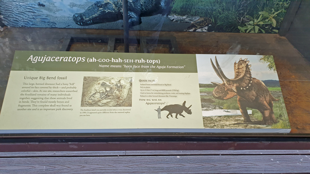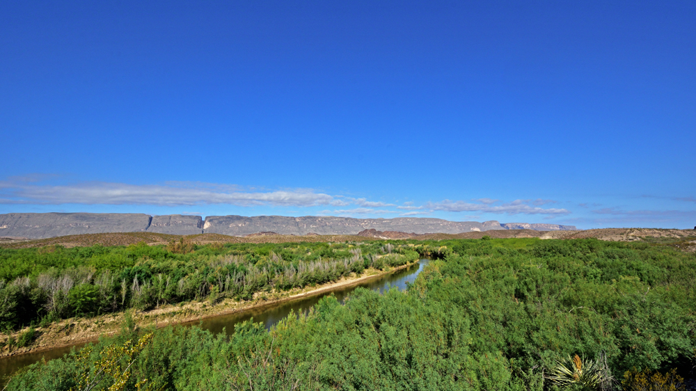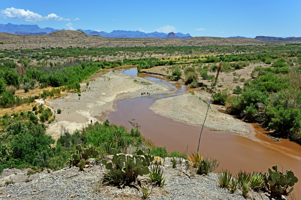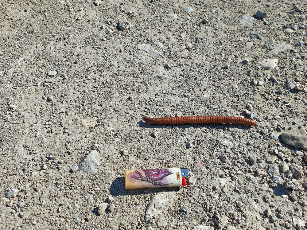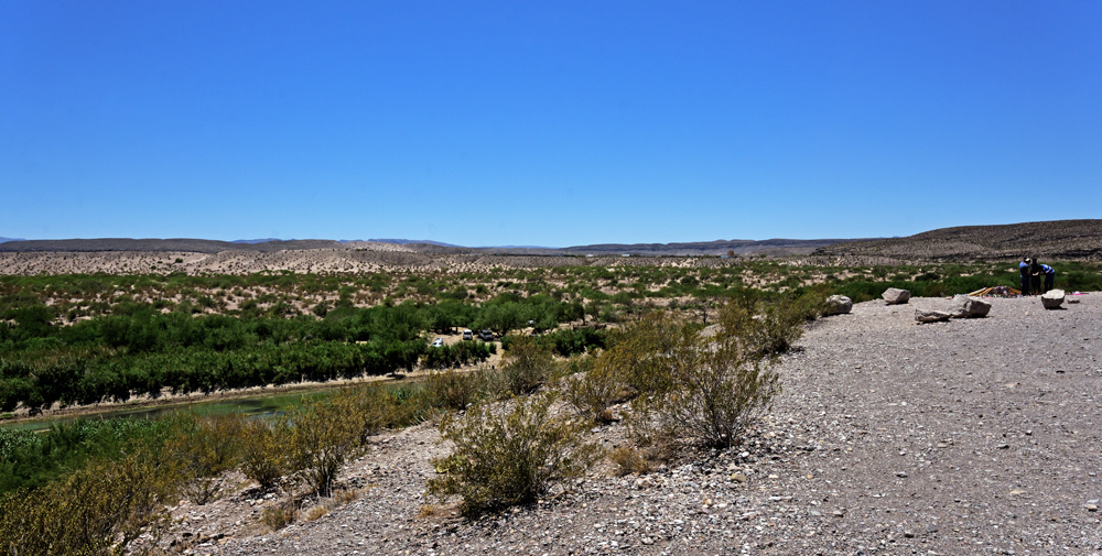 Versteht uns nicht falsch. Obwohl wir nicht gerade enthusiastisch sind, hat uns der Big Bend NP durchaus ganz gut gefallen. Es gibt drei Höhenstufen – «Fluss, Wüste und Berge» (wovon wir letztere in den Chisos Mountains wegen Bauarbeiten an der Zubringerstrasse und Sperrungen aufgrund eines grossen Feuers ausgelassen haben) – mit je eigener Flora und Fauna, dazu farbige Hügel und Felsen, Fossilienfunde (tolle, 2017 ausgezeichnete Ausstellung!), eine Quecksilbermine und Überreste von Baumwollfarmen zu sehen. An wenigen Stellen kann man auch einen Blick auf den fast ausgetrockneten Rio Grande erhaschen, der sich im Osten und Westen des Parks jeweils durch eine Schlucht zwängt. Wir sind zudem gerade zur rechten Zeit da und können uns an blühenden Sukkulenten und anderen Pflanzen erfreuen. Dazu kommen Riesen-Tausendfüssler, Vögel, Kojoten und illegale Immigranten in Form von Pferden und Kühen, die ausgebüxt und über den Fluss aus Mexiko herübergekommen sind (sie werden von den Rangern immer wieder mal eingefangen und zurückgebracht). Die Fähre nach Mexiko ist – wegen Covid und zusammenhängender Grenzsperrung – suspendiert, aber ein paar Händler und vor allem ihre Waren, die sie auf Leintüchern ausstellen, haben sich trotzdem über die Grenze geschlichen.