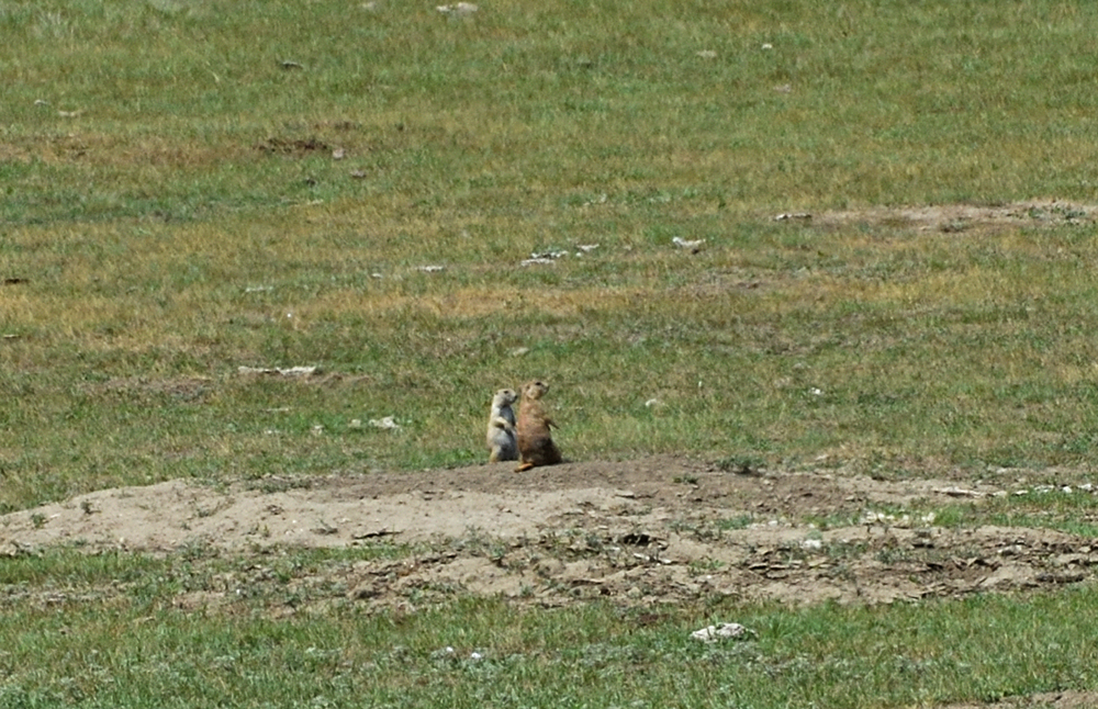 Wir fahren mal vorsichtig näher und lassen das Fenster herunter. Nach einem Blick auf unser Gefährt meinen die freundlichen Arbeiter, dass die Strasse schon gesperrt sei, wir mit unserem Fahrzeug die Stelle aber schon umfahren könnten und erklären uns den Weg über ungeteerte Farmroads. Wir sind erleichtert, hätten wir doch sonst alles zurückfahren und dann noch einen ordentlichen Umweg machen müssen. Für «die Mühe» werden wir sogar noch mit einem schönen Blick über den White River und dem Beobachten einer Präriehundekolonie belohnt.