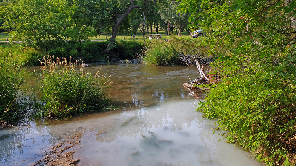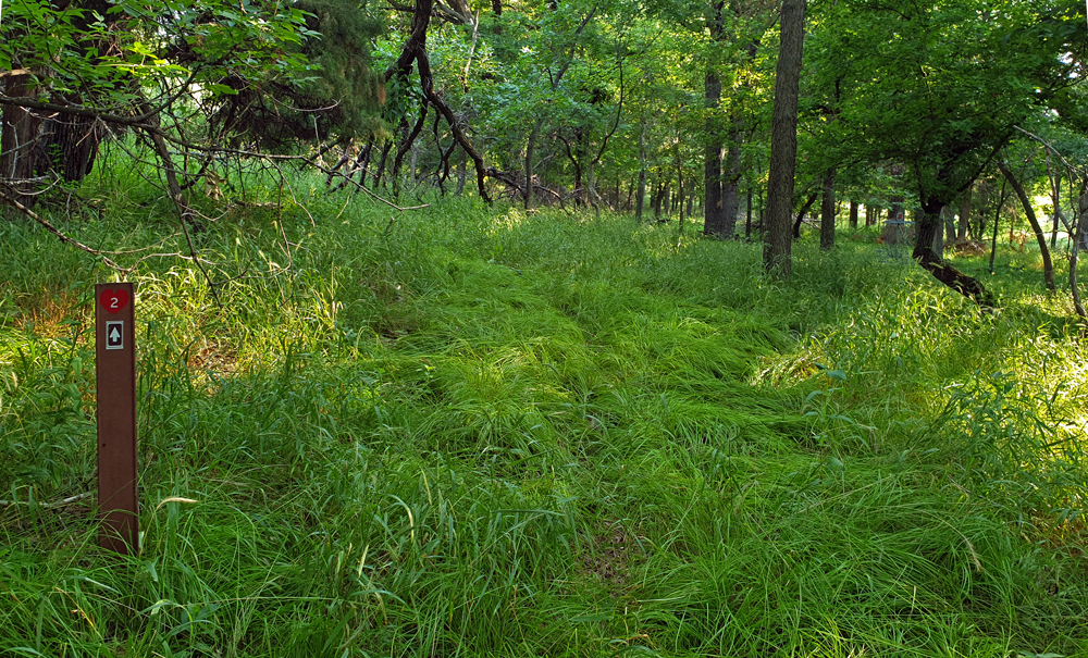Bald gelangen wir nach Nebraska und können wieder gegen eine kleine Spende im hübschen City Park von Valentine, NE übernachten. Ganz in der Nähe gibt es einen schönen, wenn auch etwas sehr zugewachsenen Rundtrail und Discgolf-Kurs (passend zum Namen der Stadt sind die Trails und auch die Strassenschilder mit Herzen dekoriert). Es ist tagsüber jeweils bis zu 35 °C, doch ziehen wir die auch hier vorhandenen Duschen einem Bad im (zumindest von der örtlichen Wäscherei) leider als Abwasserkanal verwendeten Flüsschen vor.