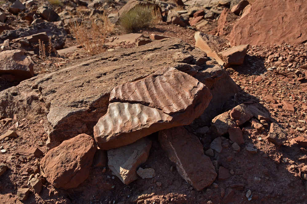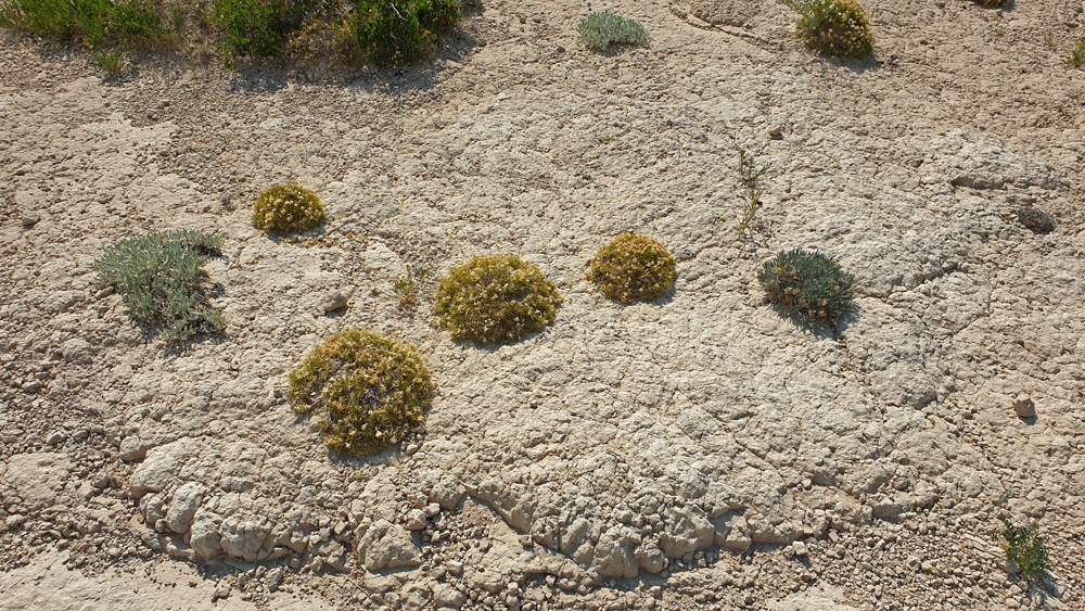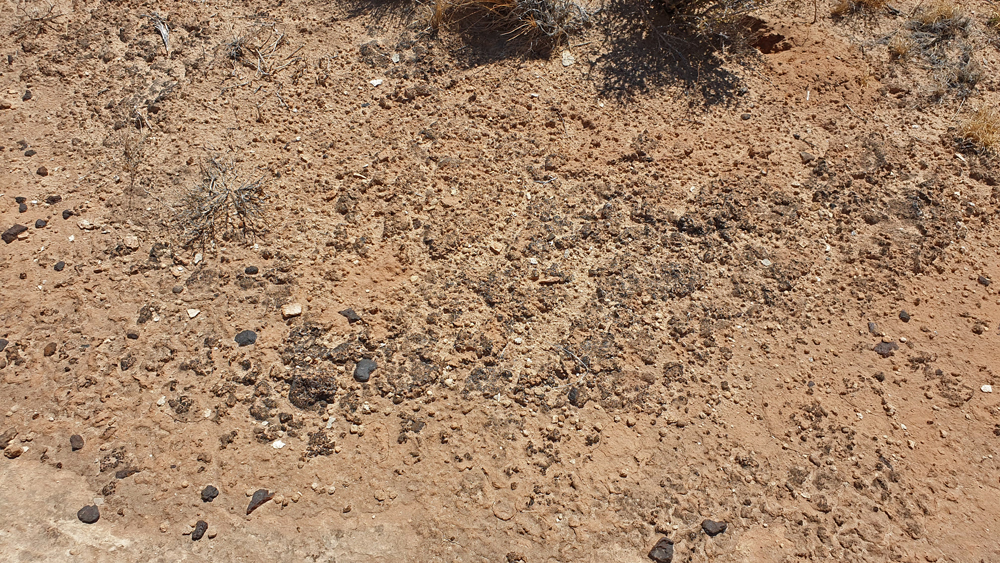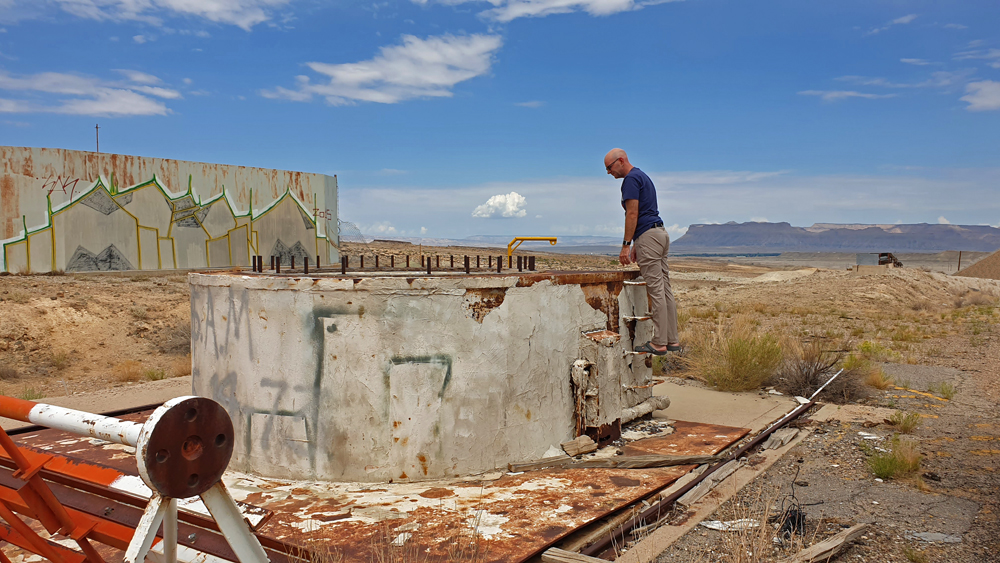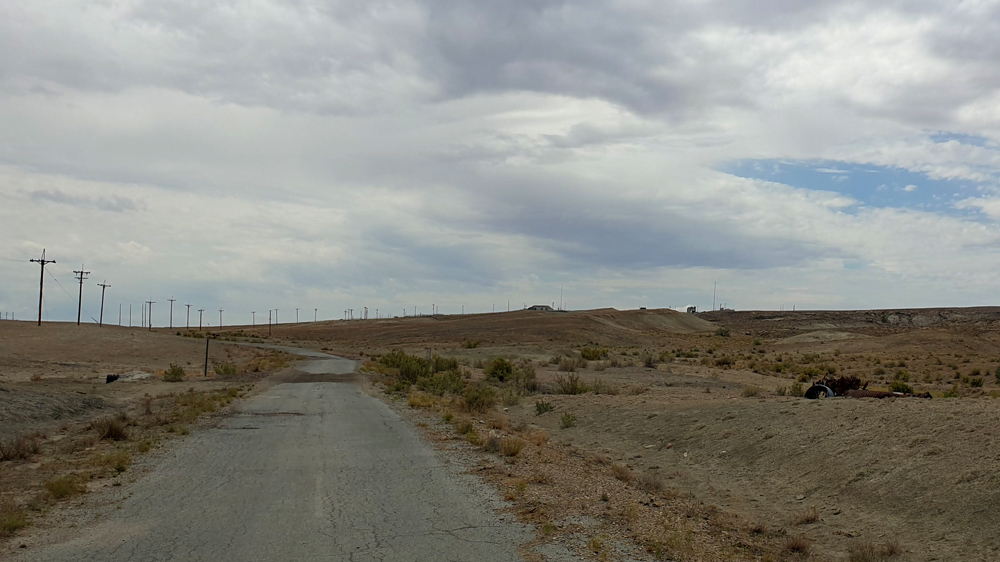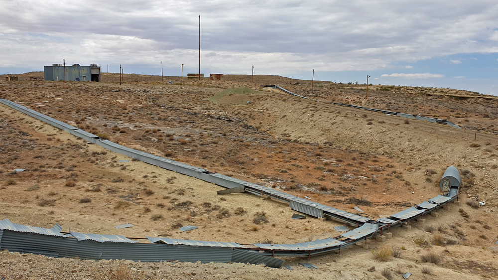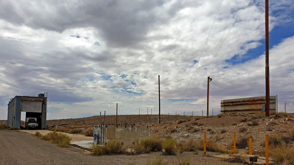 Das Gebiet gehörte von den 1960er Jahren bis 1979/1983 zum Green River Launch Complex der knapp 1000 km entfernten White Sands Missile Range in New Mexico, die von hier aus mit Pershing- und Athena-Raketen beschossen wurde. Ozy interessiert sich immer für sowas, weshalb wir anschliessend die nicht weit entfernten, alten Wellblech-Gebäude und Abschuss-Pads erkunden, die immer noch zu sehen sind.