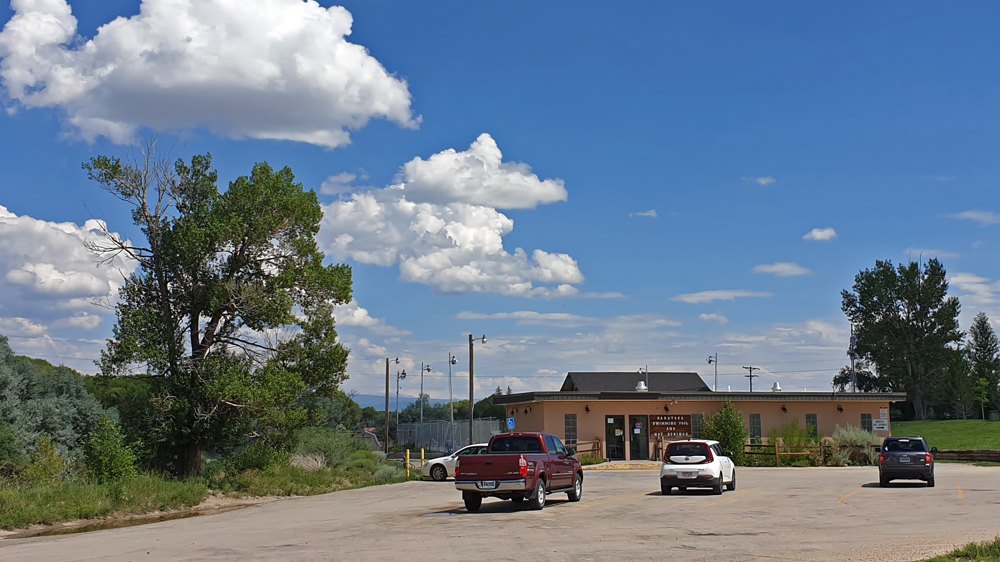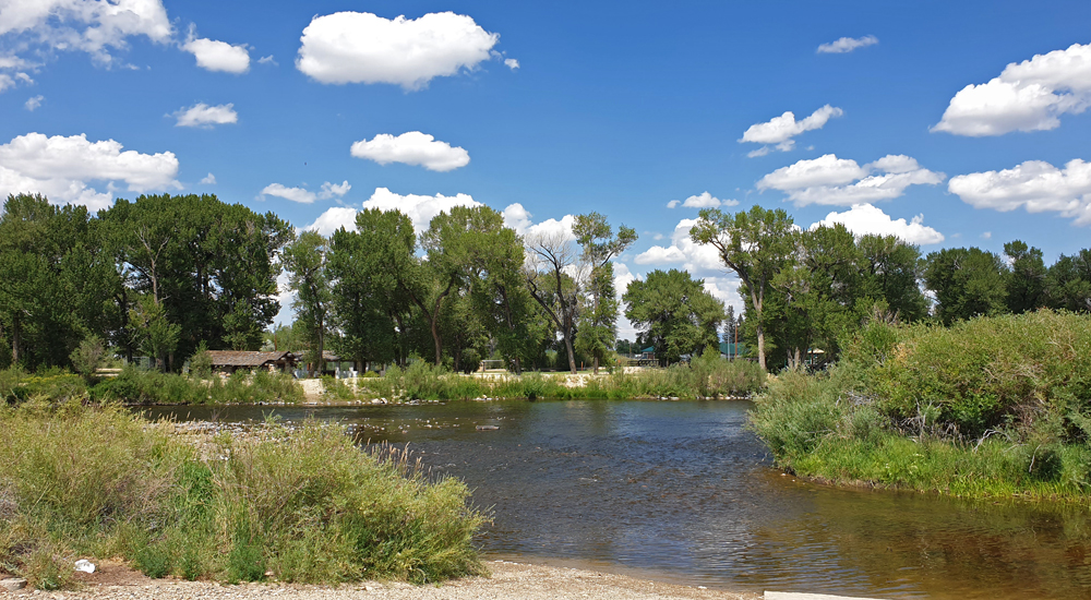 Nach diesem Schrecken brauchen wir dringend etwas Entspannung! Da kommen uns die Hobo Hot Springs im nahegelegenen Saratoga, WY gerade recht. Nachdem wir über das Wifi der Stadtbibliothek einen neuen Akku bestellt haben, verbringen wir erst mal einige Zeit im heissen bis sehr heissen, in einem Schwimmbad gefassten Quellwasser (man könnte auch in sehr flachen, nur mit Steinen aufgestauten Pools im Fluss baden, wir ziehen das tiefere Wasser im Schwimmbad aber vor…). Im Bad schliessen wir Bekanntschaft mit zwei sehr netten Damen, von denen uns eine sehr freundlich einlädt, doch einmal bei ihr in Philadelphia vorbeizuschauen.