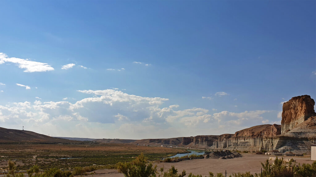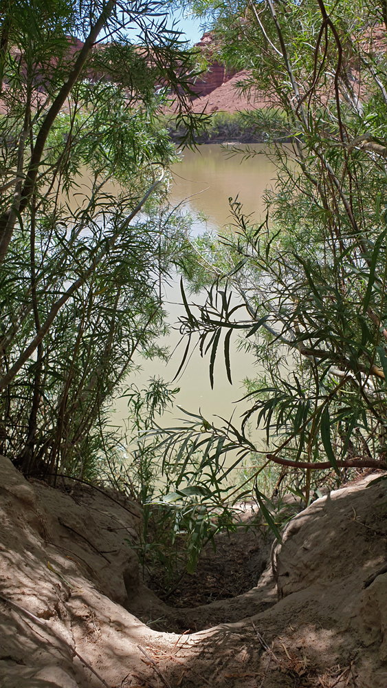 Ein kleiner Ausflug Richtung Green River zeigt schnell, dass es hier ähnlich ist, wie am Rio Grande: das Ufer ist von einem dichten Saum Vegetation umgeben und wenn man sich durchgekämpft hat, steht man an einem hohen, sandigen Steilufer, dem man besser nicht allzu nahe kommt…