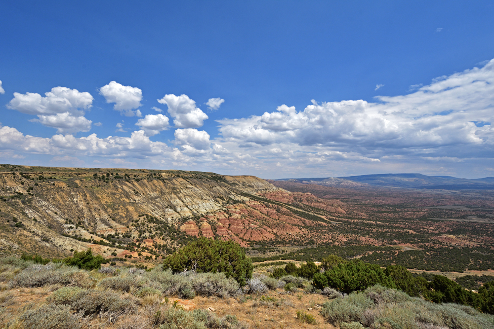Nach dem langen Fahrtag gestern geht es heute nur bis ins gut 200 km entfernte St. George, wo wir auf dem auf rund 1’800 m gelegenen Oak Grove Campground (Dixie National Forest) übernachten wollen. Leider sind Strasse und Campground wegen extremer Feuergefahr gesperrt, doch finden wir nach einigem Suchen in der Umgebung ein Plätzchen mit schöner Aussicht.