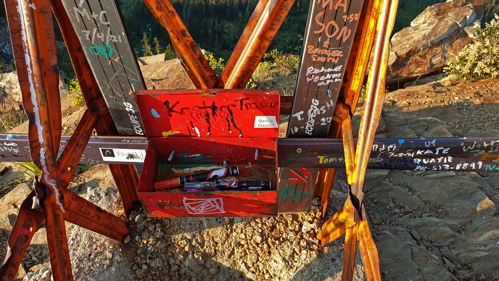 Zur Feier des Tages besteige ich am nächsten Tag den 2’822 m hohen Gipfel und trage mich ins «Gipfelbuch» ein (ok, bei einem Höhenunterschied zum Lagerplatz von rund 50 m war das keine grosse Leistung, aber trotzdem).