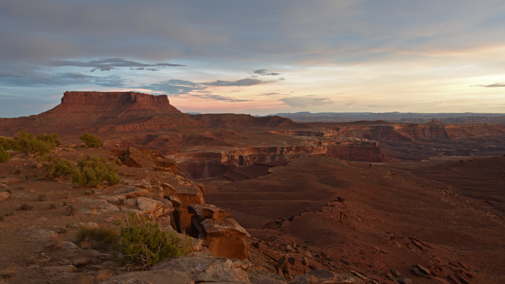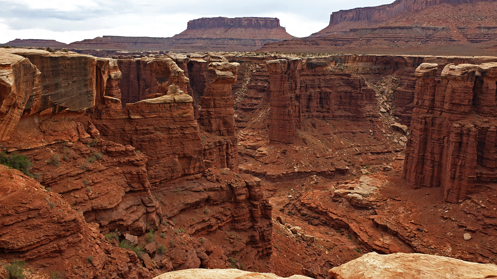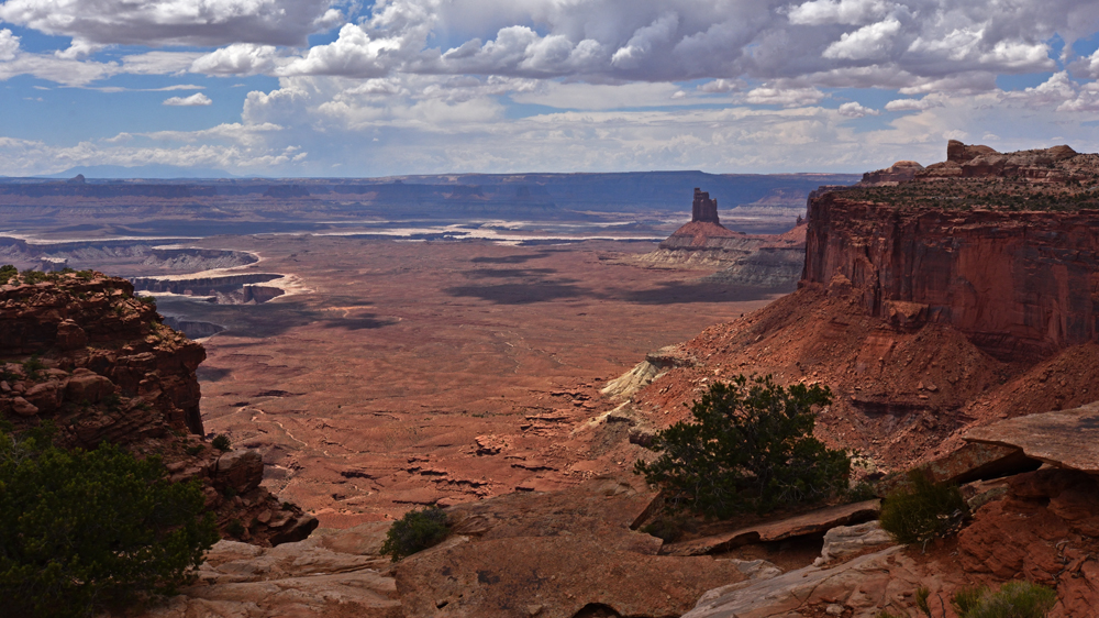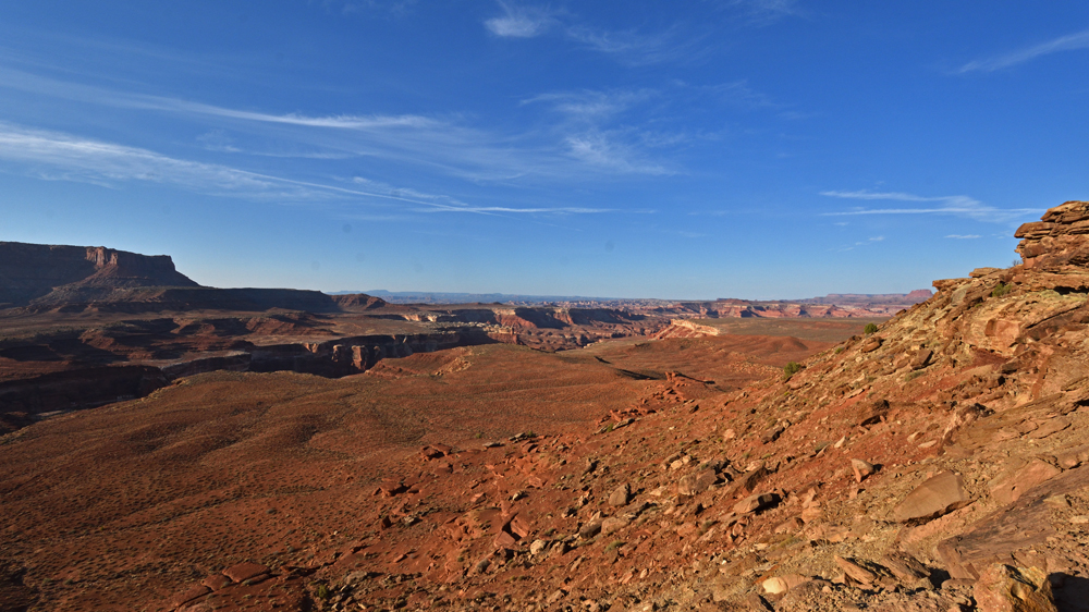 Am nächsten Tag schauen wir uns den Island in the Sky-Teil des Canyonlands Nationalpark auch noch von oben an. Der Blick von den Aussichtspunkten ist auch von hier atemberaubend, aber auf der White Rim Road ist man viel näher und unmittelbarer dran, wie wir finden. Ausserdem hat es hier oben viel mehr Menschen…