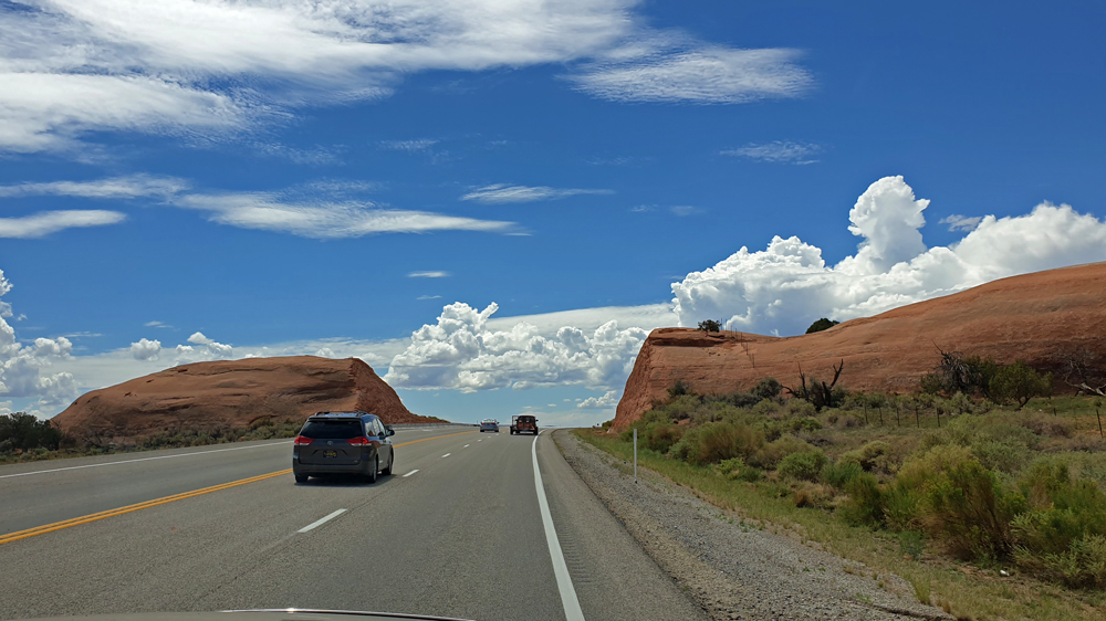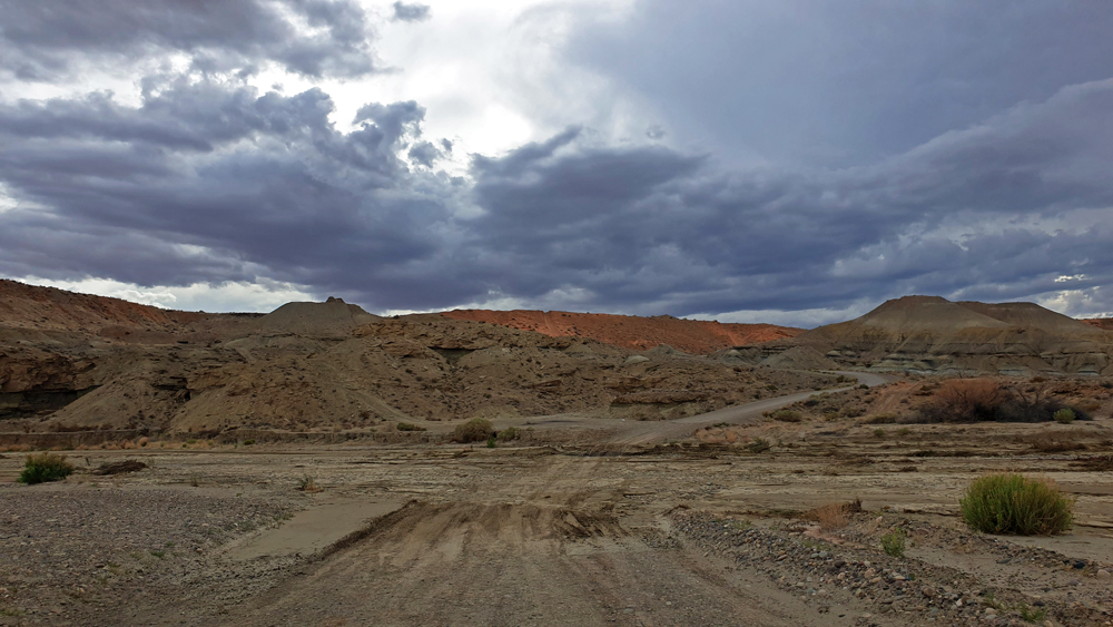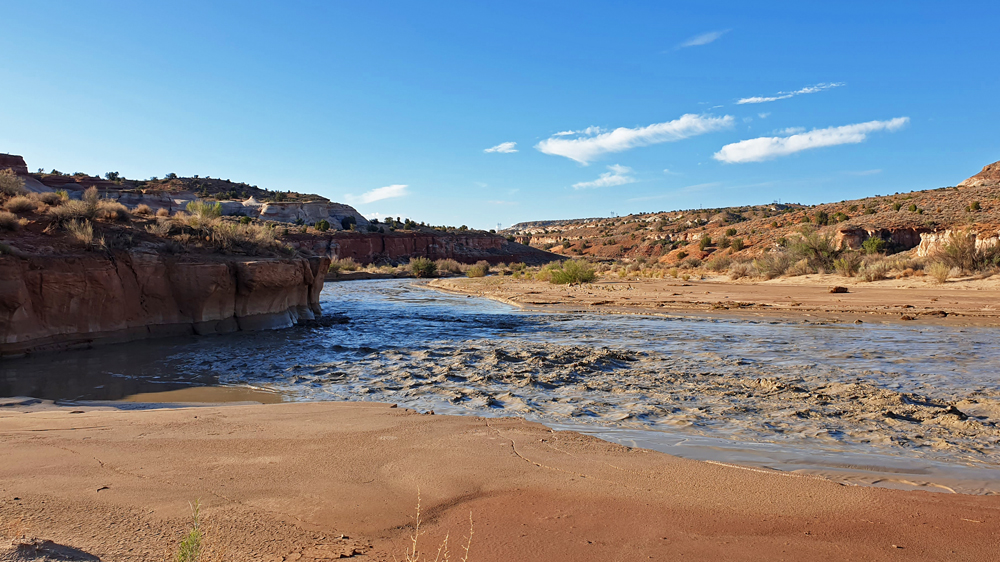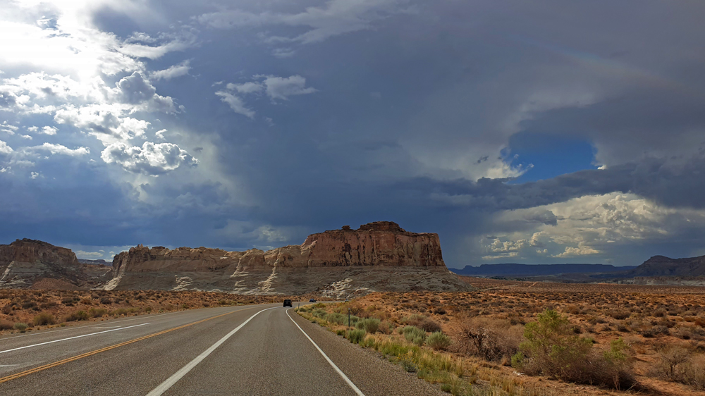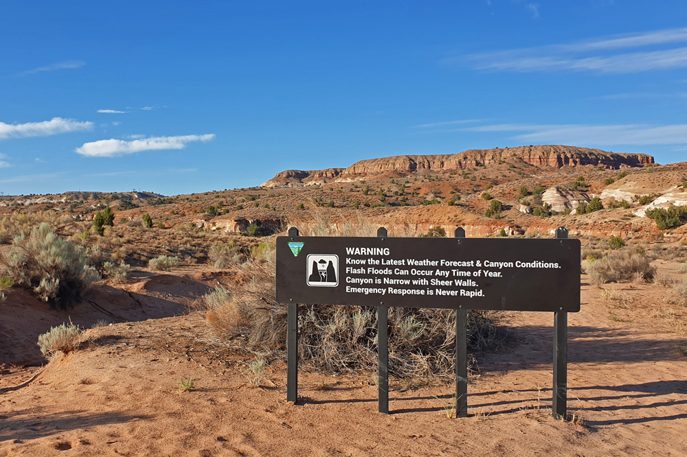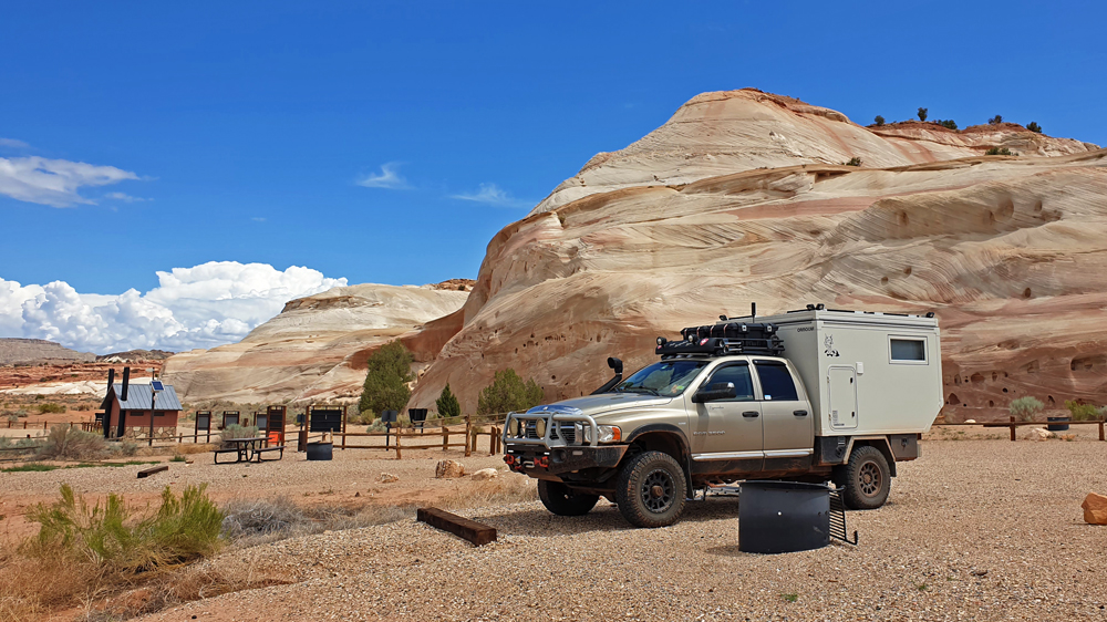 Während eines langen Fahrtages geht es über 500 km nach Süden, wo wir auf die Route treffen, die wir 2019 mit Franz gefahren waren. Wir passieren Kayenta, AZ und Page, AZ und gucken uns den Glen Canyon Dam an (das Besucherzentrum ist wieder mal wegen Covid gesperrt…). Wir wollten eigentlich am Lake Powell übernachten, doch passt uns die Gegend überhaupt nicht (siltige Piste, sehr karge Gegend und es sieht schon wieder verdächtig nach Gewitter aus, die die Piste vermutlich in Schlamm verwandelt). Zum Glück finden wir nur rund 40 km entfernt den einfachen White House Campground im äussersten Zipfel des Grand Staircase Escalante National Monuments. Von hier aus könnte man 6 km zum Paria Canyon laufen (der längste Slot Canyon der Welt). Ich gehe mal zum Trailhead gucken, doch erscheint mir die Wanderung aufgrund des hohen Paria Rivers und des sehr unbeständigen Wetters nicht angeraten.