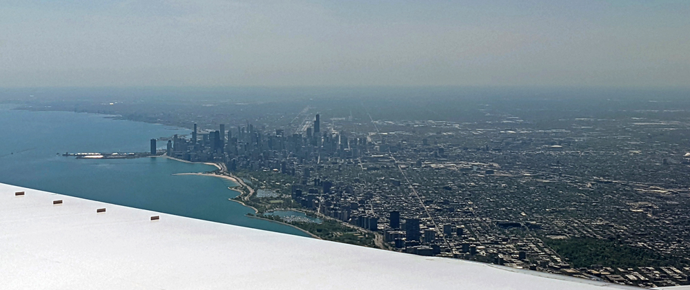 Obwohl es ein Freitag, der 13. ist (da gab es günstige Angebote… 😉 ), verläuft beim Flug nach Chicago alles wie geplant. Auch die immigration im riesigen HUB Chicago O’Hare verläuft problemlos und viel schneller und angenehmer als das letzte Mal in Dallas/Ft. Worth.