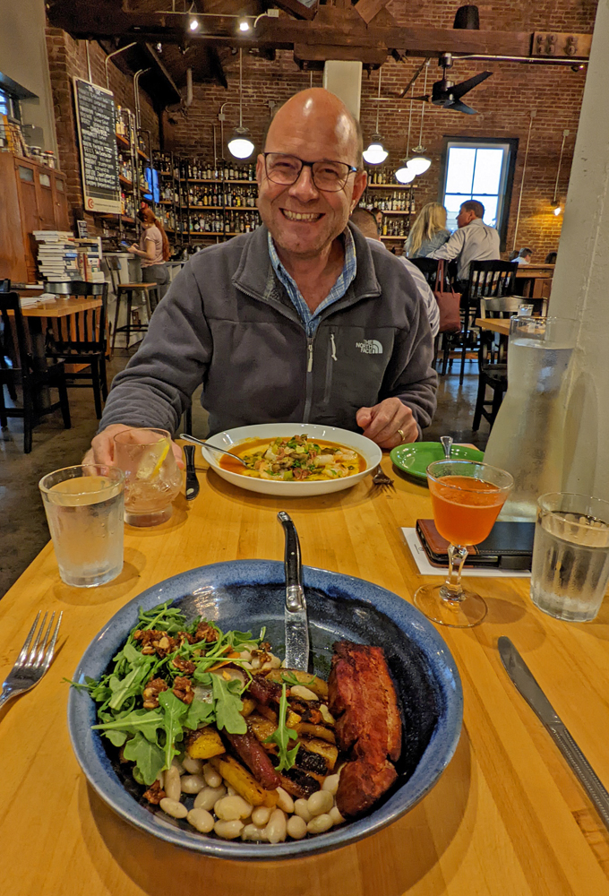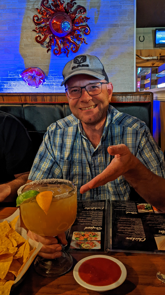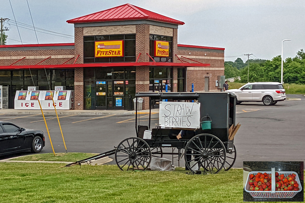 Mittlerweile ist es auch hier Frühling geworden und alles grünt und blüht. Bei einem Amish Strassenhändler, der statt eines Lieferwagens seine Kutsche dabei hat, kaufen wir eine Gallone Erdbeeren (kleiner gibt’s nicht…), die wir die nächsten Tage in allen möglichen Varianten essen. Vicki verwöhnt uns wieder nach Strich und Faden und ich geniesse es, einen Backofen zu haben… Am zweitletzten Abend führen uns die beiden ins mexikanische Restaurant «El Potrero», wo sich Steve und Ozy je eine XL-Margarita bestellen. Vicki bezeichnet sie als birdbath-Margarita und trifft damit den Nagel auf den Kopf: in dem riesigen Kelch hat doch tatsächlich ein Liter Platz (und am Tequila wird nicht gespart…)! Es wird ein sehr fröhlicher und denkwürdiger Abend!